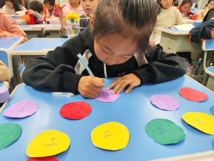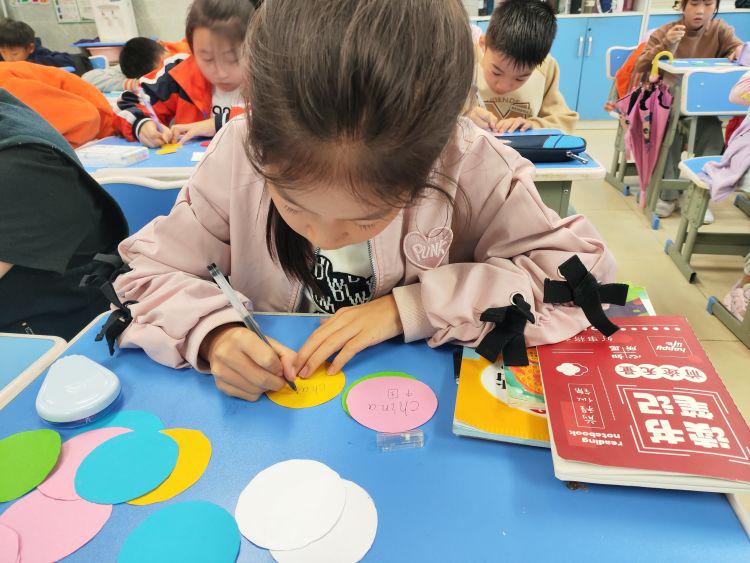 “现在,把你会的‘ch’单词写在圆片上吧!”老师刚说完,教室里就响起笔尖划过卡纸的“沙沙”声。有的学生下笔飞快,有的学生皱着眉想,每个圆片上的单词,都成了藏着“ch”的小宝藏。