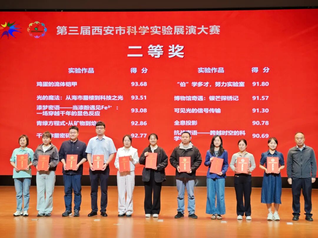 以实验探求真知,与科学共赴热爱!近日,西安市灞桥区东城第二小学师生在两项市级科学实验展演大赛中连创佳绩,用实力书写了学校科学教育的亮眼答卷!9月25日,第三届西安市科学实验展演大赛总决赛在长安先导国际创新人才交流中心圆满落幕。该校庞晓晨、梁宇琪两位教师携实验作品《青绿方程式・从矿石到焰火》,从全市各科研单位、高等院校及中小学组成的30支参赛队伍中脱颖而出,荣获二等奖!