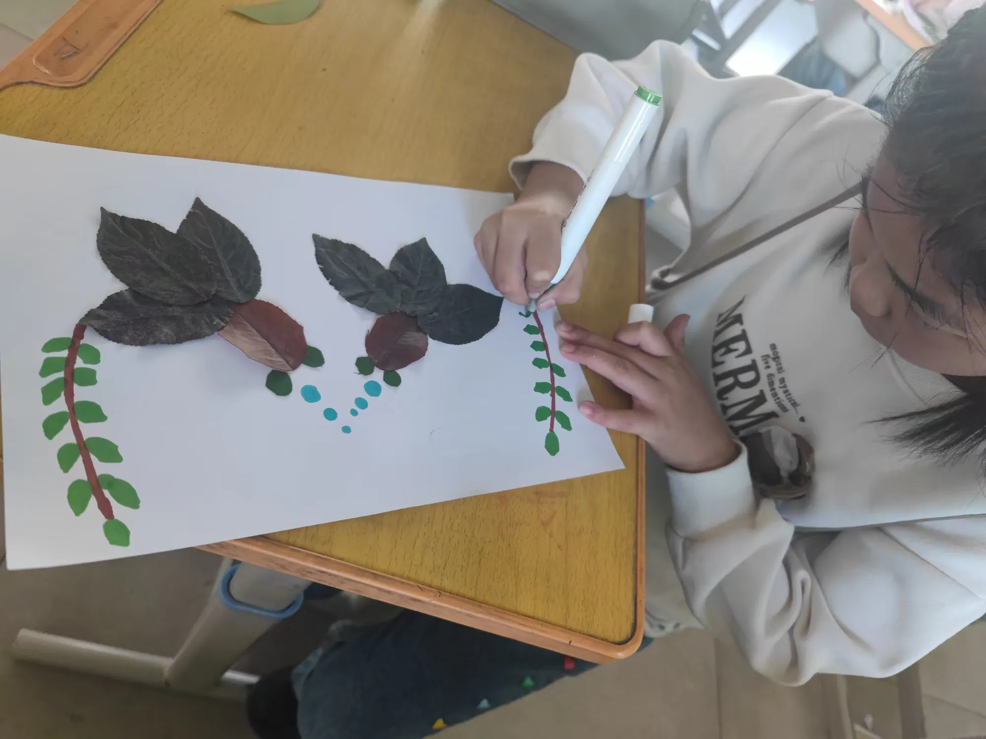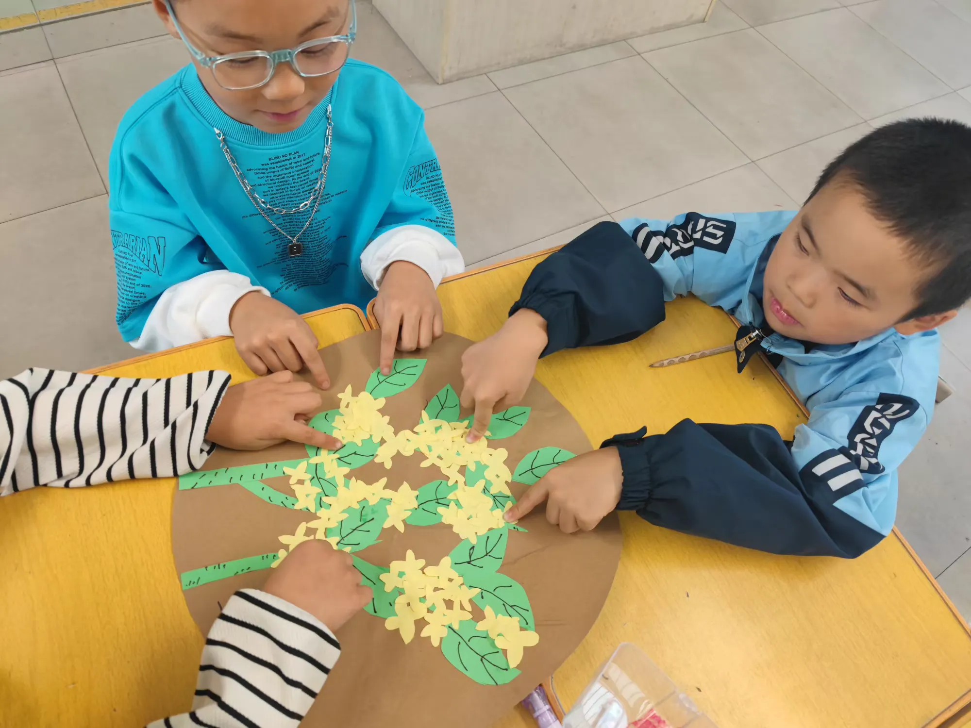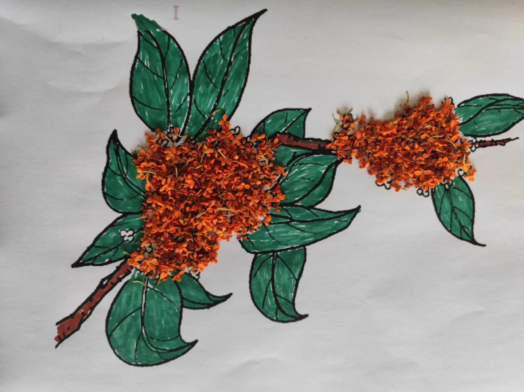 小小艺术家们识树也绘树,不仅画了姿态各异的大树,还用大树叶创作了许多作品,大树叶子在孩子们的指尖跳跃,姿态万千。看!那用材料制成的桂花,仿佛正释放着淡雅的香气。沉浸在孩子们充满想象力的作品中,真让人眼花缭乱,孩子们画的可真好!