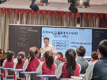 彭小明老师执教《卫星运行时间》——以航天精神为引,探乘法运算之秘。