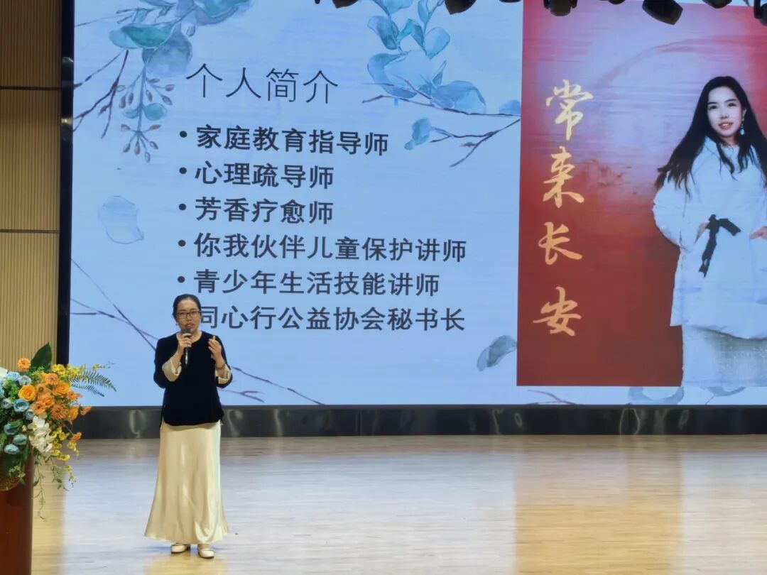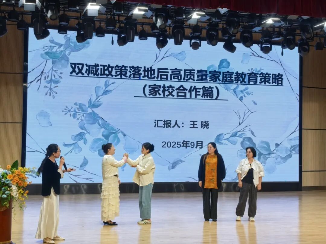 学校还邀请了二级心理咨询师、中国高级家庭教育指导师王晓作《“双减”政策落地后高质量家庭教育策略》专题讲座。王老师以深刻的洞察力,引领家长们跳出“唯分数论”的思维定式,剖析了从“重分数”到“重成长”这一教育理念的根本性转变。她以鲜活的案例阐述了在“双减”背景下,家庭教育的核心应聚焦于孩子身心健康的全面发展与个性化兴趣的深度培育,为家长们提供了切实可行的方法论指导。