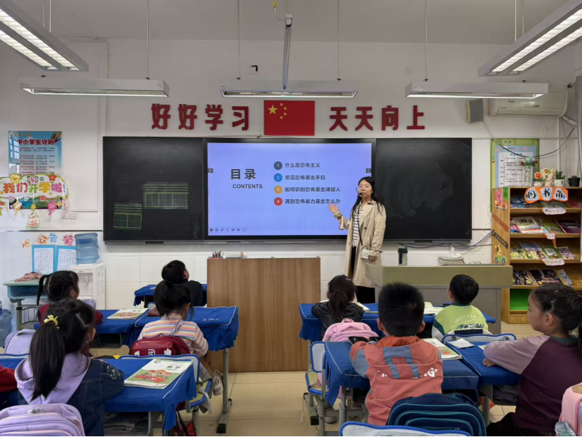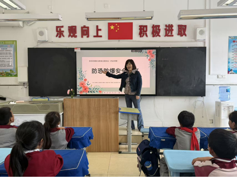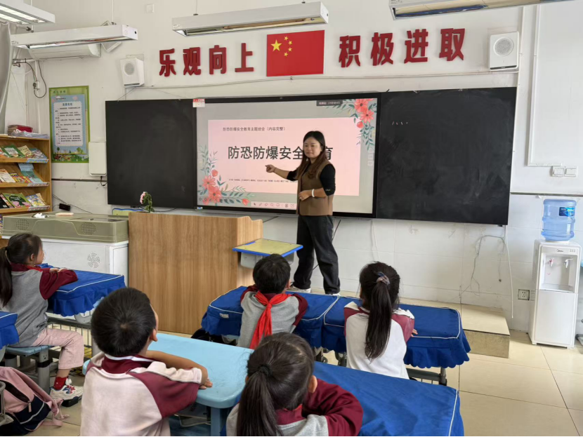 演练前,安保处教师通过班会课向孩子们普及防恐防暴知识:用动画短片讲解“哪些行为可能是危险信号”,用情景模拟教大家“遇到危险时如何快速躲藏”,还示范了“被控制时如何避免激怒对方”等实用技巧,让抽象的安全知识变成孩子们能理解、会运用的“护身本领”。