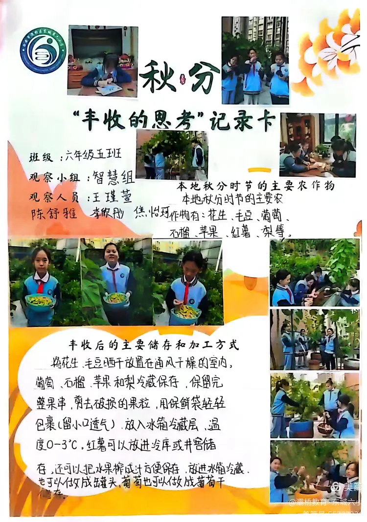 同学们分组探究秋分时节主要农作物丰收后的储存和加工方式,并进行记录。