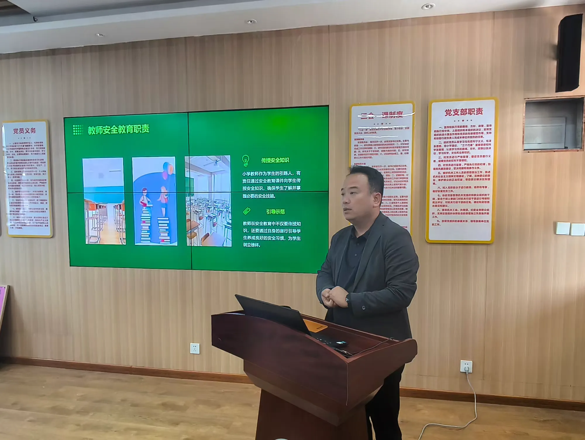 为压实责任、提升教师安全育人能力,9月25日,西安市灞桥区东李小学校长何鹏飞为全体教师开展校园安全专题培训。