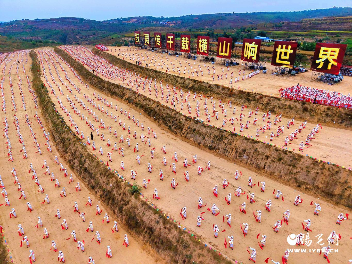 阳光讯 (记者 张壮壮 李源)鼓舞传千载,横山响世界。9月27日,在陕西省榆林市横山区,横山老腰鼓非遗进校园成果展演活动成功举办。5000名朝气蓬勃的中学生统一着装,在广袤的黄土地上跳跃击鼓间传承千年文脉,为横山老腰鼓这一国家级“非遗”注入青春活力。