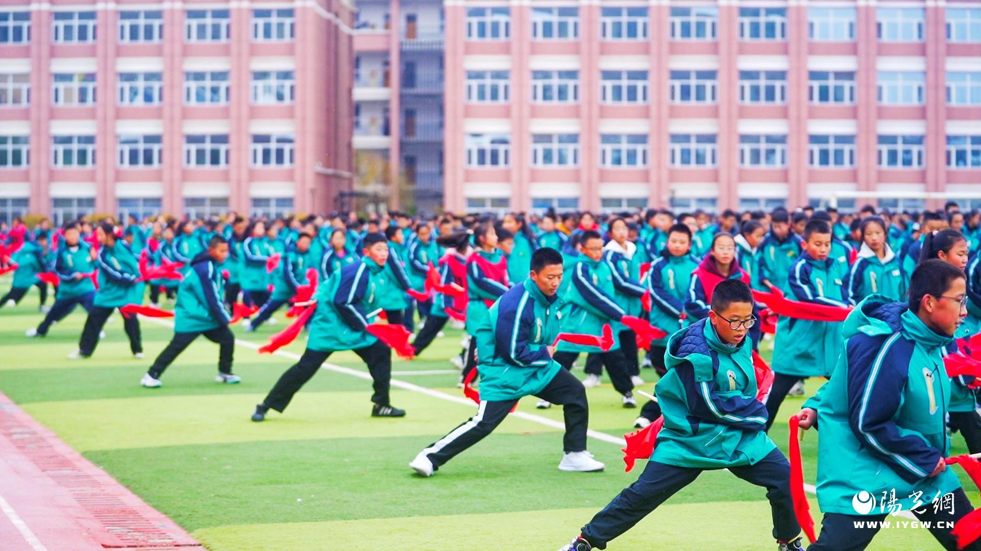 红绸飞扬处,歌声嘹亮时。值中华人民共和国成立76周年即将到来之际,全体参与展演的中学生腰鼓队员迈着铿锵有力的腰鼓步,在场的观众挥舞着手中的国旗,大家齐唱《歌唱祖国》,用歌声和舞蹈共同表达对伟大祖国的热爱与祝福。