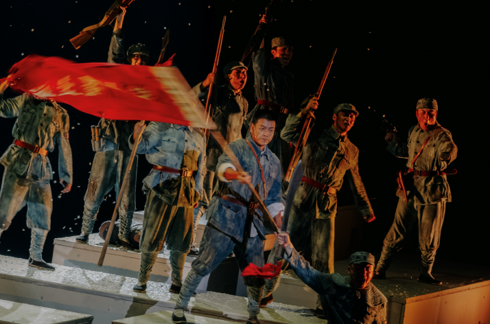当晚七点半,《铁流东进》在西安开元大剧院进行了最后一场演出,现场反响热烈。该剧讲述了1941年新四军皖中独立师第三团东进受阻,被围困于白马山,与上级失去联系后,一位普通百姓发报员在战火中经历信仰觉醒,最终与新四军战士一起用生命守护电波畅通的感人故事。