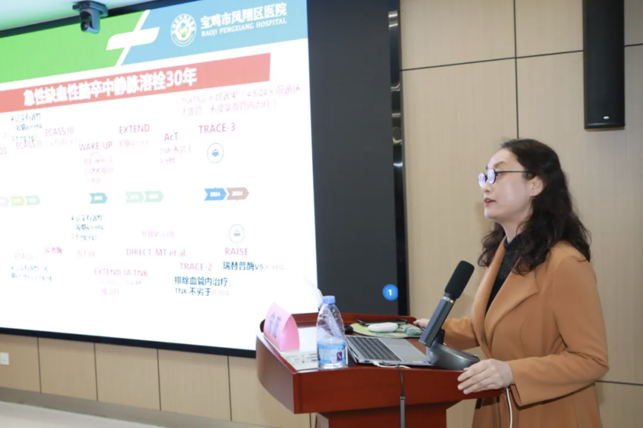 阳光讯(记者 郑亚雷)9月27日,“经桡神经介入技术新进展暨静脉溶栓培训班”在宝鸡市中医医院举办。本次会议由陕西省红十字会基金会脑卒中专委会主任委员、西安高新医院神经内科学科带头人、三病区主任贾颐教授牵头,联合宝鸡市卒中学会主办,以“创新技术、规范诊疗、协作共赢”为主题,汇聚省内外专家,通过专题讲座、病例分享及互动研讨,为区域神经内科医护搭建学术平台,助力提升卒中诊疗水平。