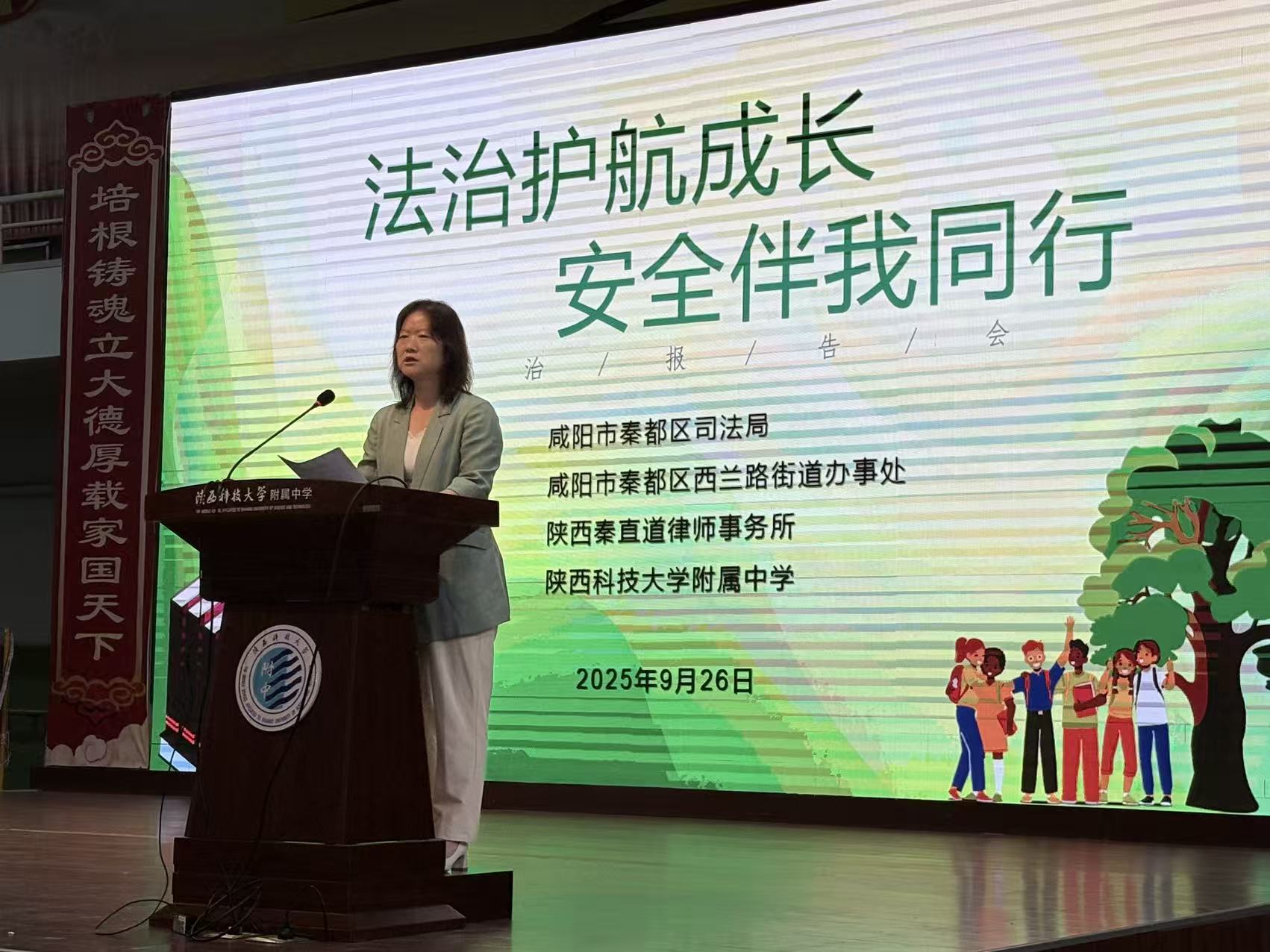 阳光讯(记者 赵小康 通讯员 侯雨含 文/图)为强化未成年人法治观念,织密校园安全防护网,9月26日,西兰路司法所联合秦直道律师事务所,走进陕西科技大学附属中学,以“守护青春·与法同行”为主题开展法治宣讲,用法律为青少年健康成长撑起“保护伞”。