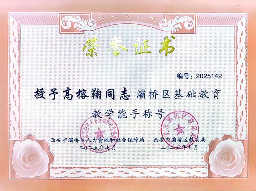席王街道中心幼儿园高榕鞠老师、王宁老师荣获灞桥区教学能手称号。