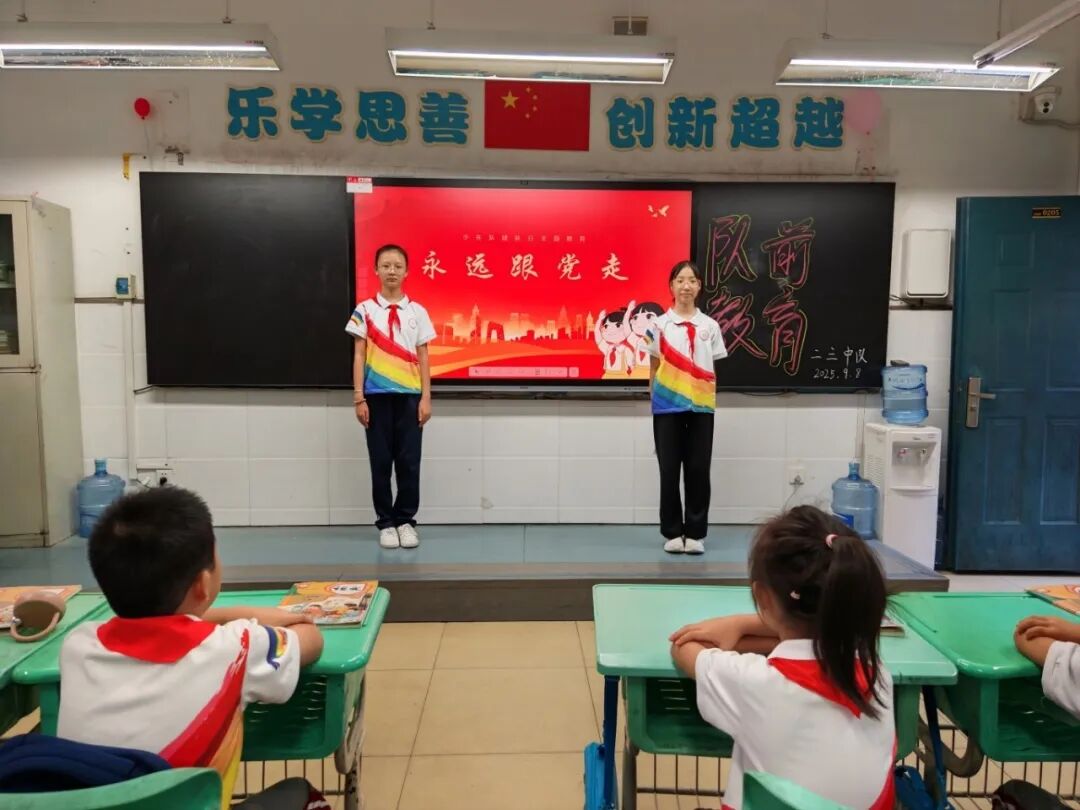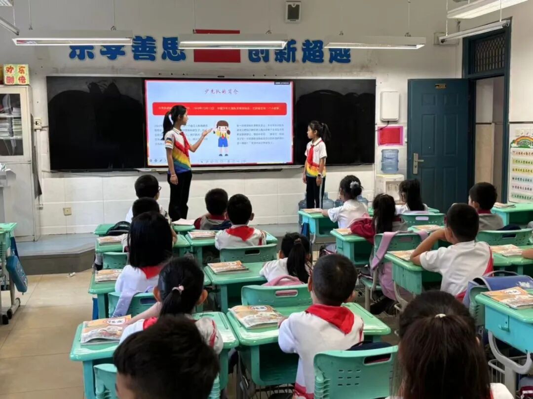 为使新队员充分理解少先队的光荣使命,入队仪式前,学校大队部精心组织大队委员走进二年级各个班级,为新队员们讲解“六知”“六会”“一做”等少先队基本知识和技能,同学们眼神专注,学得认真,对加入少先队充满了无限的憧憬。