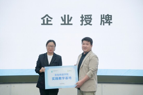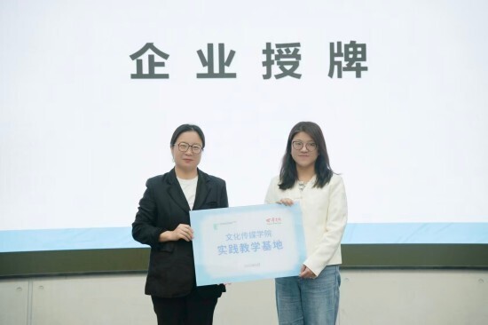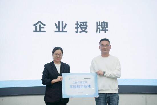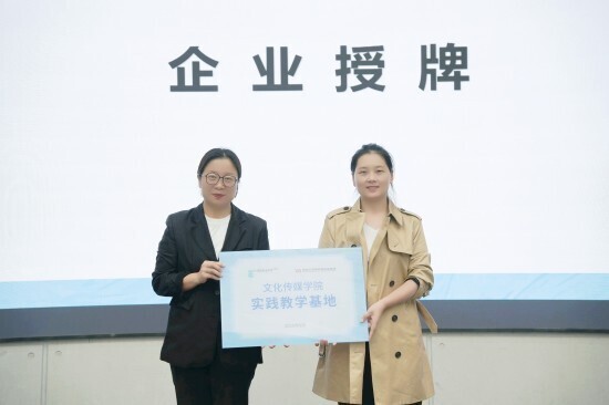 在授牌仪式上,文化传媒学院副院长曹小娟依次向北京童立方文化品牌管理有限公司、陕西秦之泉饮品集团销售有限公司、西安华商网络传媒有限公司、浙江燃点创新影视科技有限公司、华商传媒风华年文化发展有限公司等共五家企业授予“实践教学基地”牌匾,为学生构建起直达行业现场的稳定实践平台。学院将持续与多领域雇主企业深化合作,拓展多元实践渠道,助力学生开阔视野、积累实战经验。