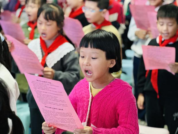 随后,宋馨妈妈带领全体学生齐声朗诵“青少年人生格言”。朗朗书声中传递出孩子们对未来的向往与坚定的信念。她走入学生队伍,与孩子们共同诵读,并以“我最棒,我能成功!”的集体呼喊将气氛推向高潮。整个校园仿佛被自信的声浪席卷,每一个孩子脸上都写满了阳光与肯定。