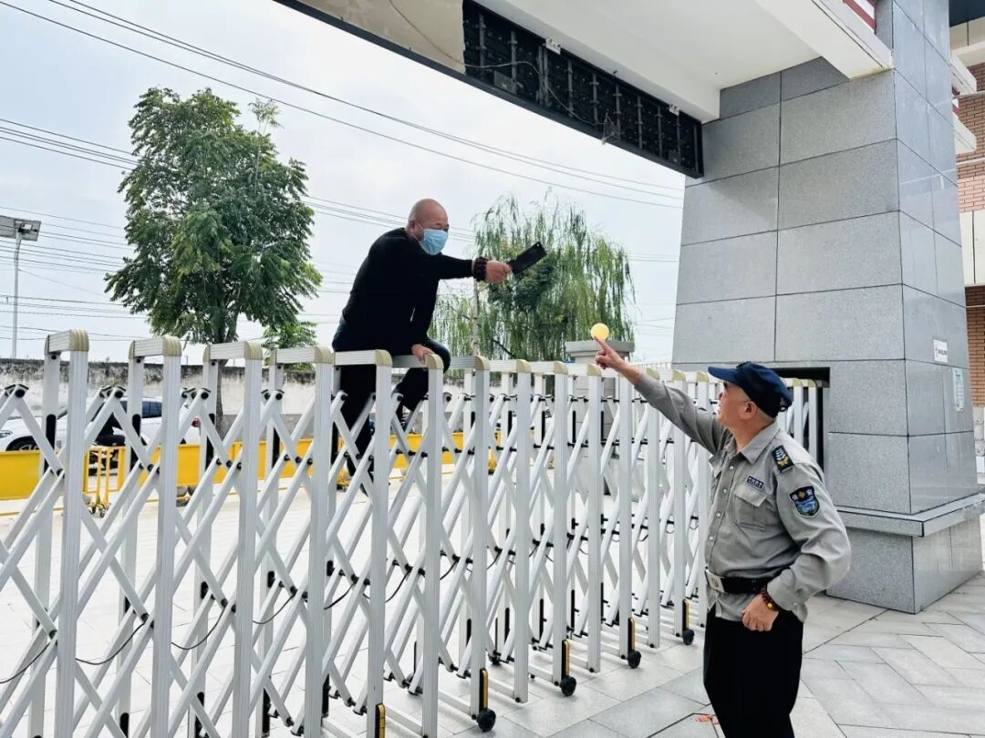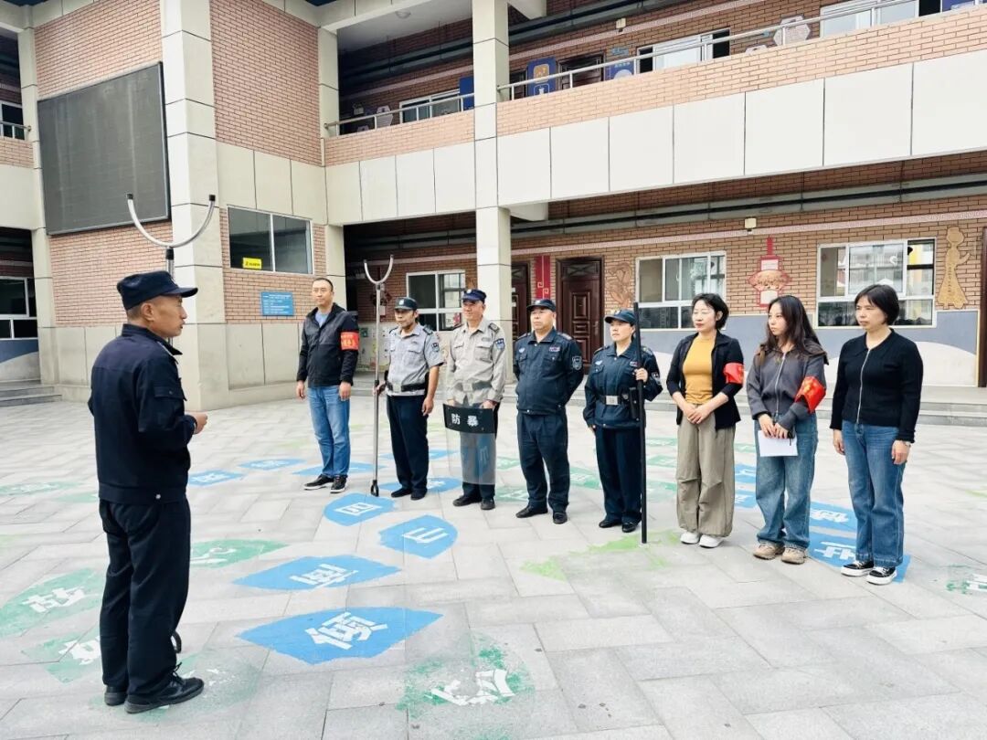 演练伊始,模拟“歹徒”持械试图闯入校园,校门口保安第一时间发现险情,立即启动应急响应:迅速按下一键报警装置,同步向学校领导汇报。通过校园广播发布紧急通知:“校园内发生紧急情况,请全体师生保持冷静,按要求避险。”清晰指令让师生快速进入避险状态。