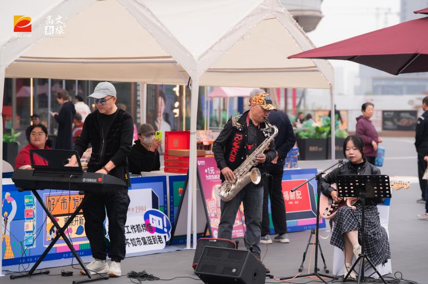 街头乐队的演出更为市集注入浓郁艺术气息。键盘、萨克斯与吉他的旋律交织流淌,不少市民驻足聆听,随音乐轻轻摇摆,音乐与市集的烟火气交融,营造出轻松又充满活力的秋日氛围。