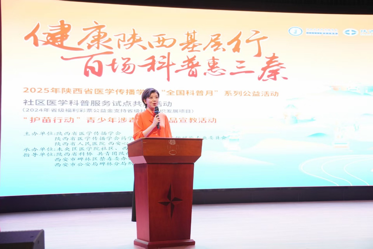 阳光讯(记者 郑亚雷)9月26日下午,“健康陕西基层行·百场科普惠三秦”全国科普月系列公益活动——“护苗行动”青少年涉毒麻精药品宣教活动在西安医学院举行。本次活动由陕西省医学传播学会、陕西省医学传播学会药学创新服务与药师赋能专业委员会、陕西省人民医院联合主办,西安医学院承办,是学会推动医学科普走进校园、守护青少年健康成长的重要实践。