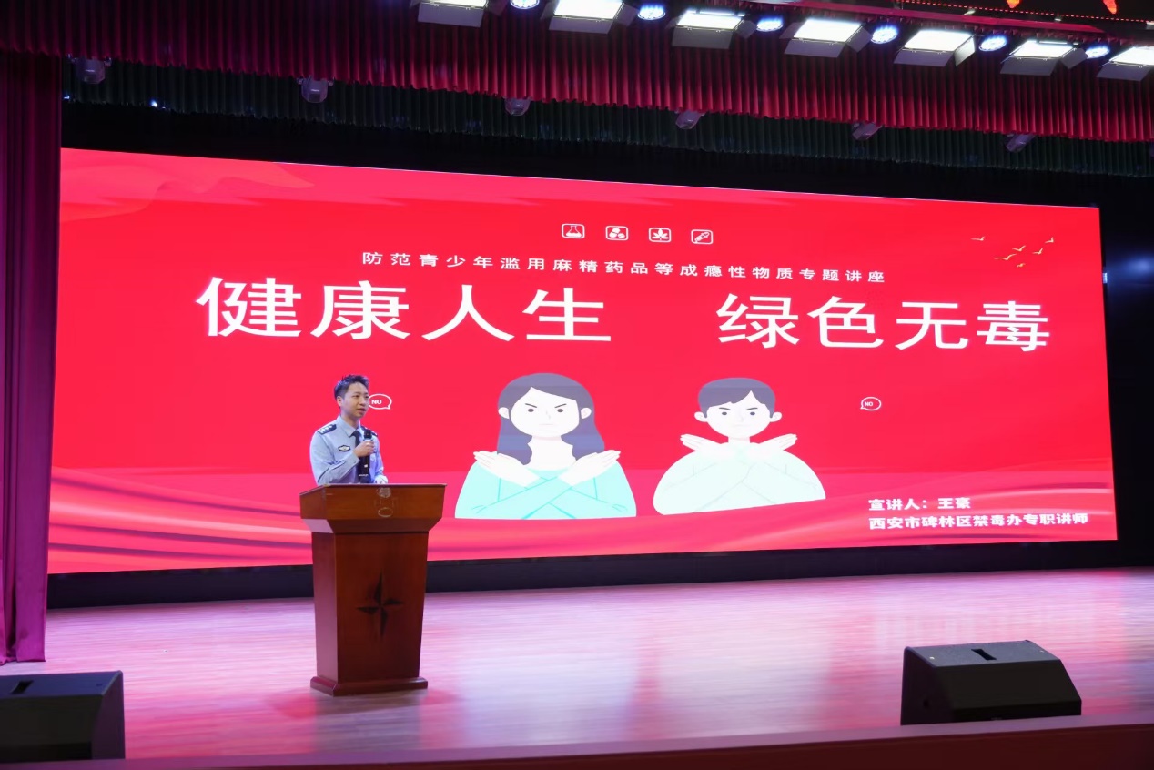 宣讲环节中,陕西省人民医院西咸院区门诊组长闫蓉以《涉毒麻精药品概述》为题,系统梳理了麻精药品的种类、滥用危害及法律边界;西安市公安局碑林分局禁毒办杜警官结合真实案例,深入剖析青少年涉毒行为的诱因与后果,强化法制教育。