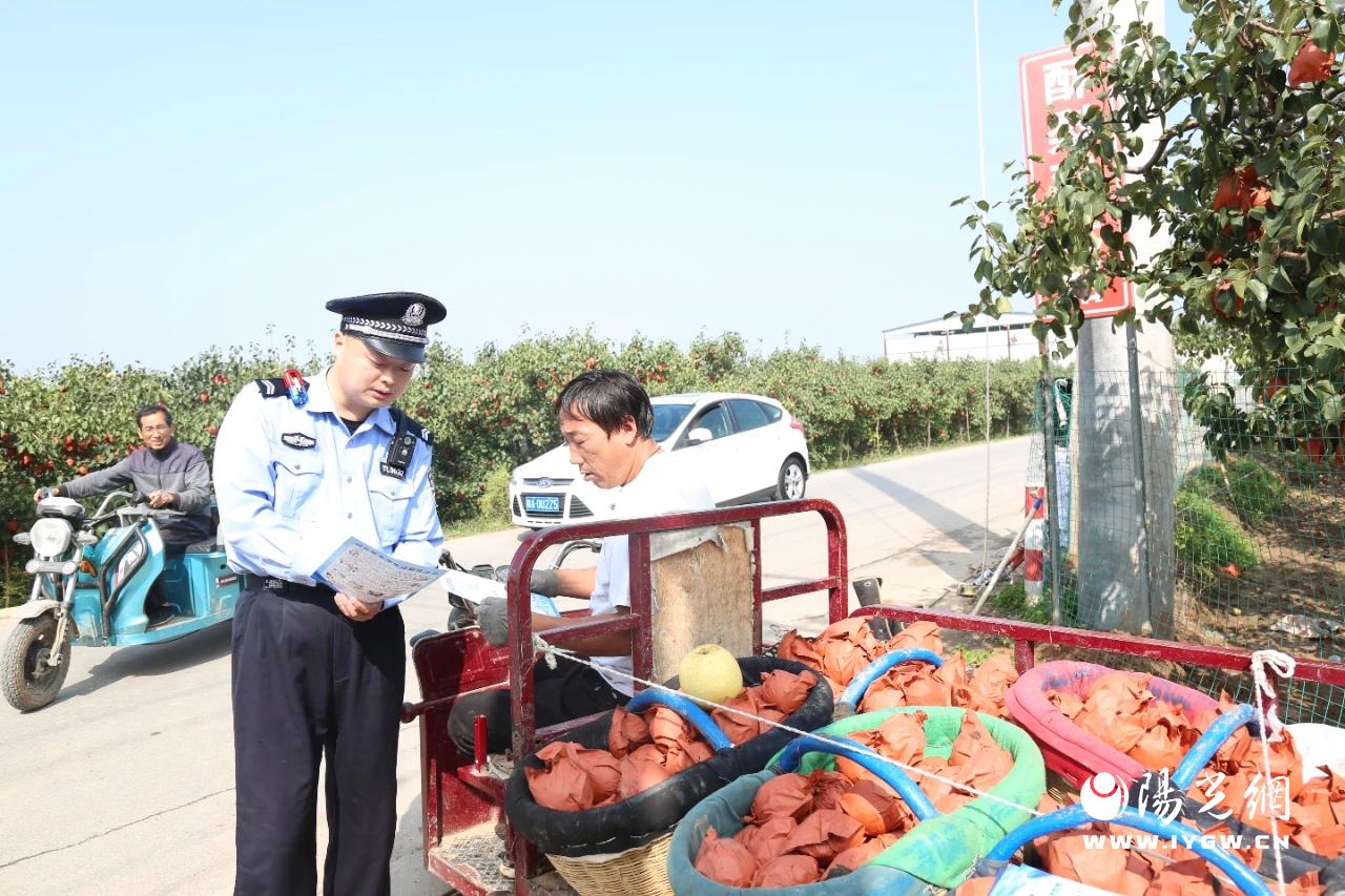“老乡们,摘梨路上骑三轮车可别载人,咱得把安全放第一!”在田间地头,民警正拿着宣传单,结合近期农村交通事故案例“谝安全”。秋收季农用车出行频繁,派出所交警中队民警们带着警民联系卡、安全宣传单,跟着农户的作息“错峰”宣传。针对老人安全意识较弱的特点,民警用方言讲案例、举实例,把“一盔一带”、农用机械操作规范等知识揉进家常话里。