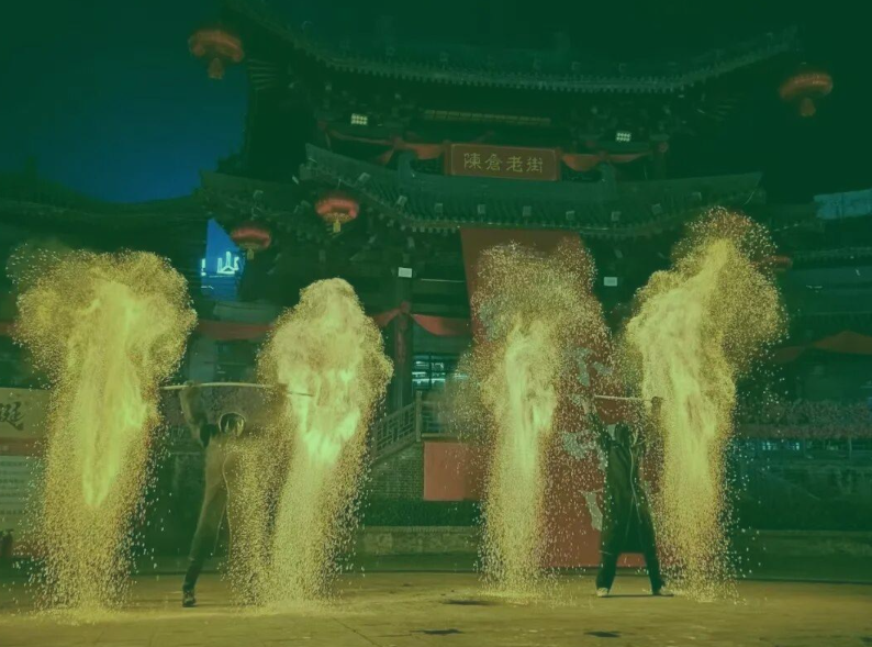 双节期间,聚丰文化里推出餐饮满减活动。石鼓太阳市带来挂衣秦腔、非遗打铁花等活动,还有形式多样的美食品鉴。