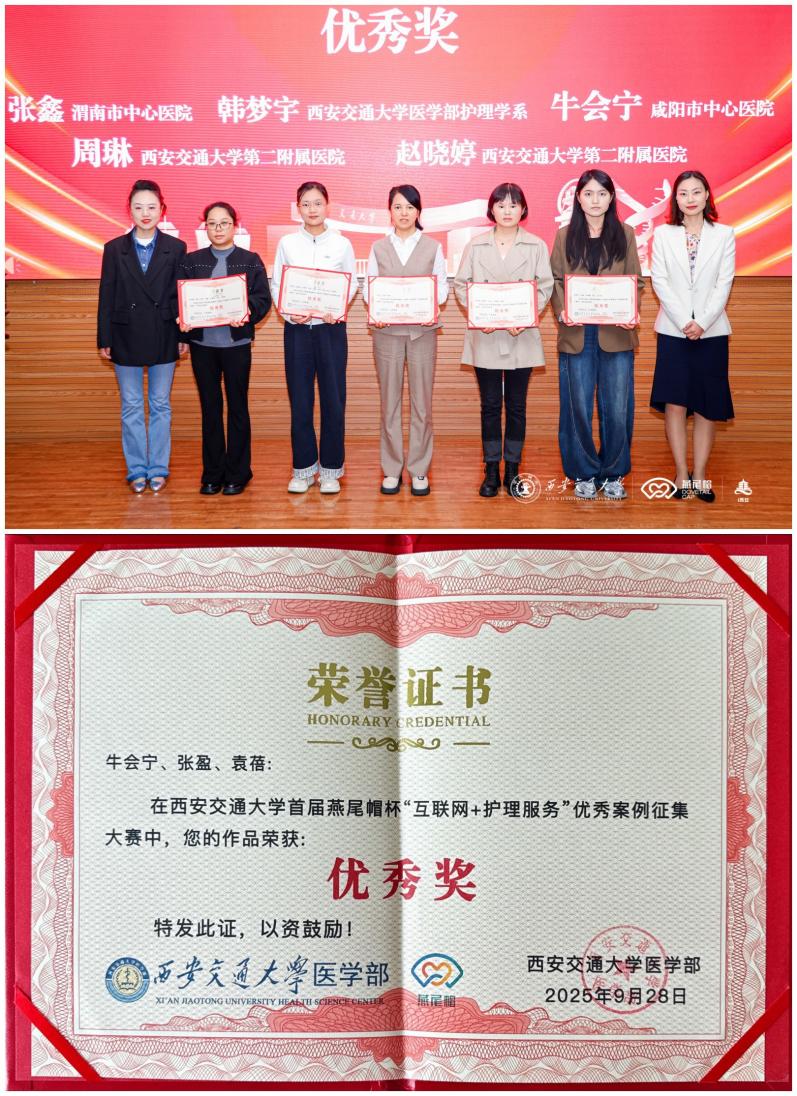 阳光讯(记者 赵小康 通讯员 王小娟 文/图)9月28日,在西安交通大学医学部主办的首届“燕尾帽杯—互联网+护理服务”优秀案例征集大赛中,咸阳市中心医院报送的两个案例分别荣获二等奖和优秀奖,体现了咸阳市中心医院在该领域的创新实践与成效。