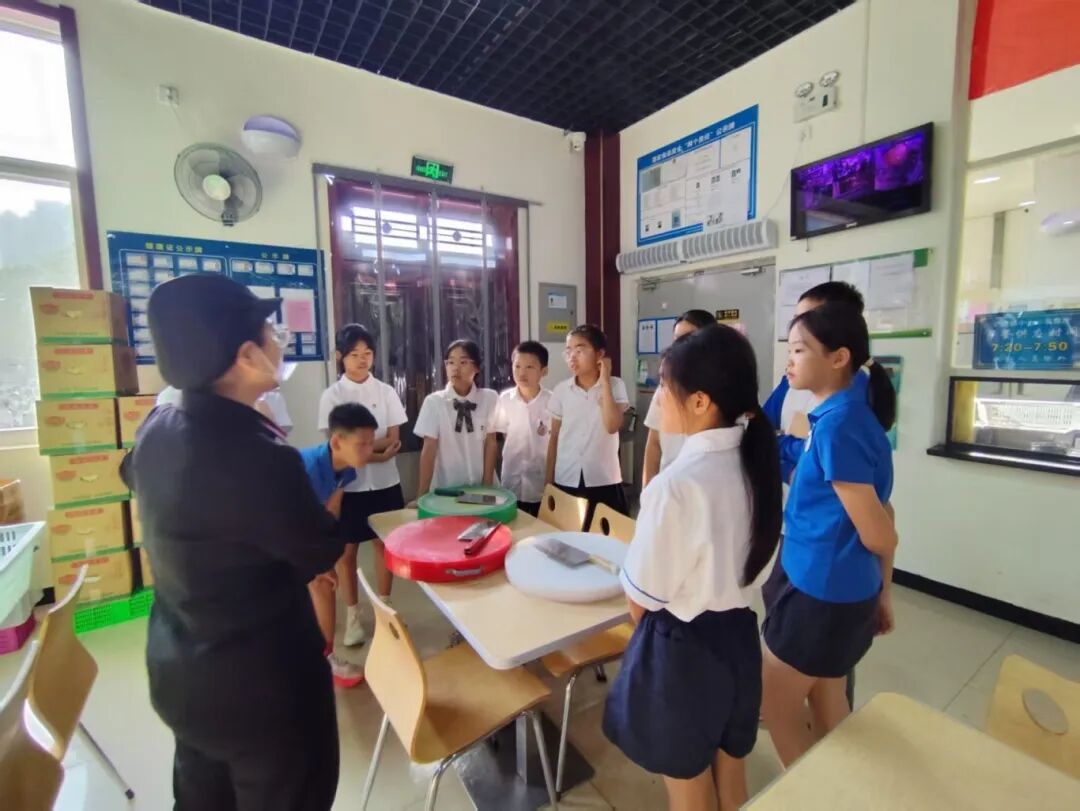 食堂里,“小小食品安全质检员”体验活动热闹开启。同学们佩戴专属标识,跟着食堂工作人员检查食材新鲜度、查看消毒记录,亲身感受食安管理流程,在实践中树立“食安无小事”的意识。