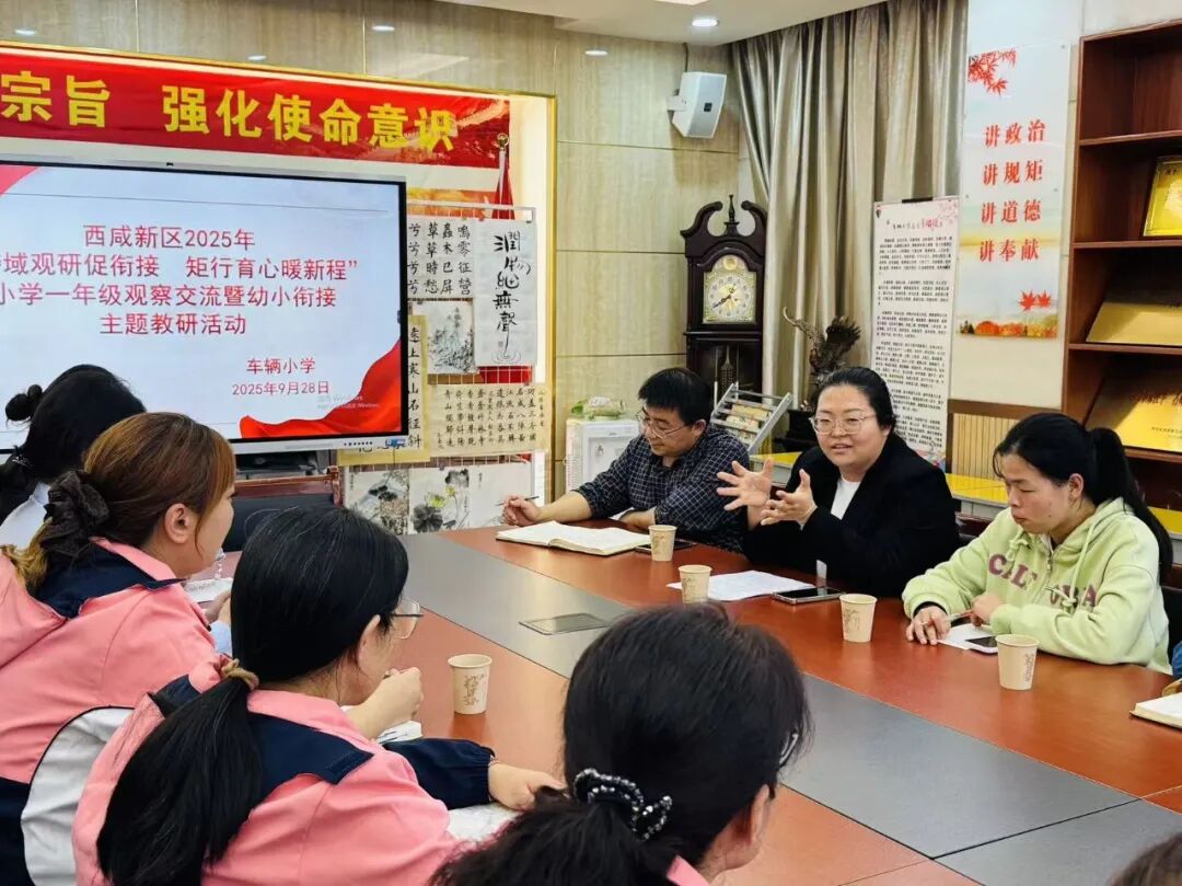 为扎实推进幼小衔接工作,助力儿童平稳度过入学适应期,9月28日下午,西咸新区沣东新城车辆小学携手西咸新区沣东新城车辆幼儿园、西咸沣东育苗幼儿园、西咸沣东晨光幼儿园,以 “聚焦核心经验,共话幼小衔接” 为主题,开展观察交流活动,搭建园校协同育人桥梁。