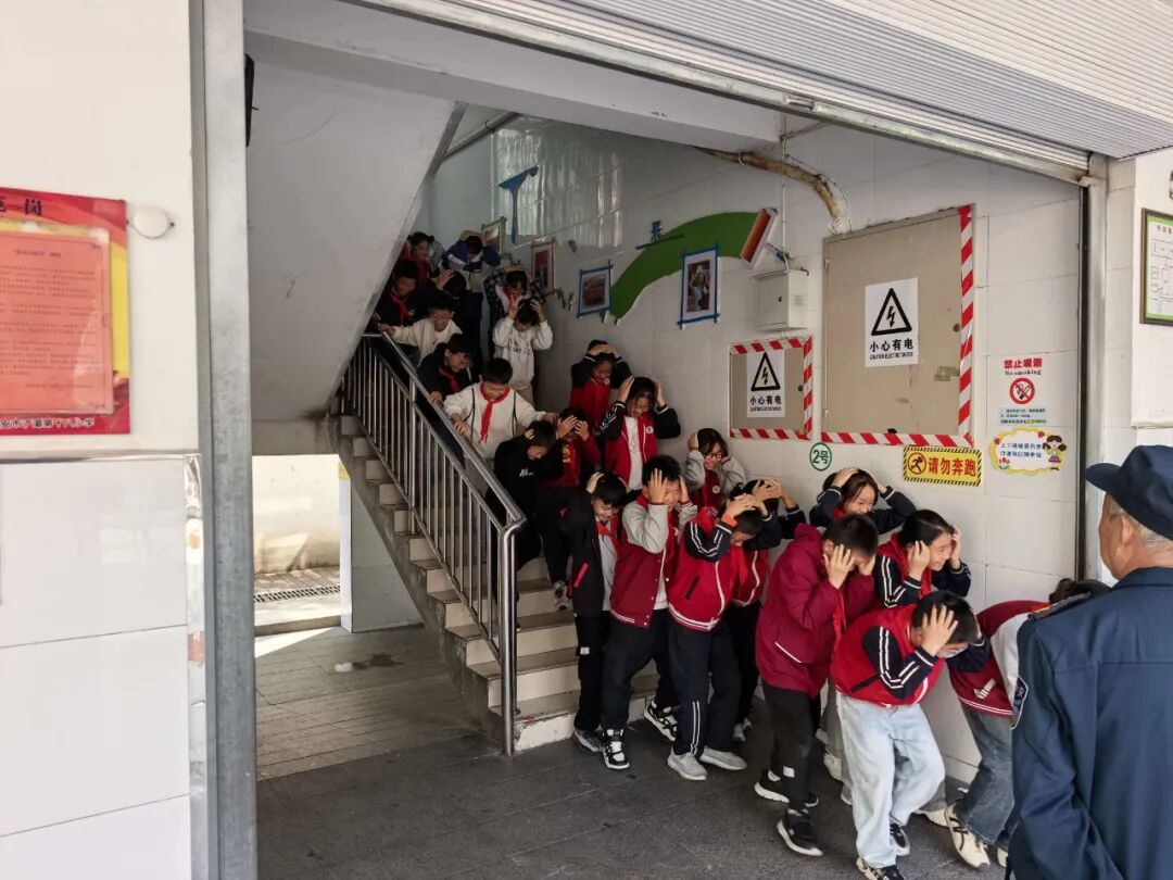 下午14时整,急促的警报声准时在教学楼响起,演练正式启动。同学们立刻响应,在班主任的指挥下迅速有序撤离。