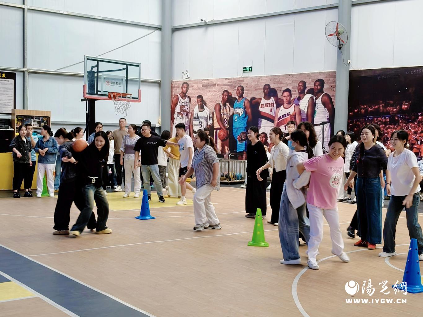 背靠背运球项目满是欢声笑语。两人一组背靠背紧扣双臂,共同托举篮球穿越赛道,既要把控平衡避免掉球,又要协调步伐提升速度。过程中偶尔的小失误引得全场大笑,却也让职工们在磨合中快速拉近距离,默契在互动中悄然升温。