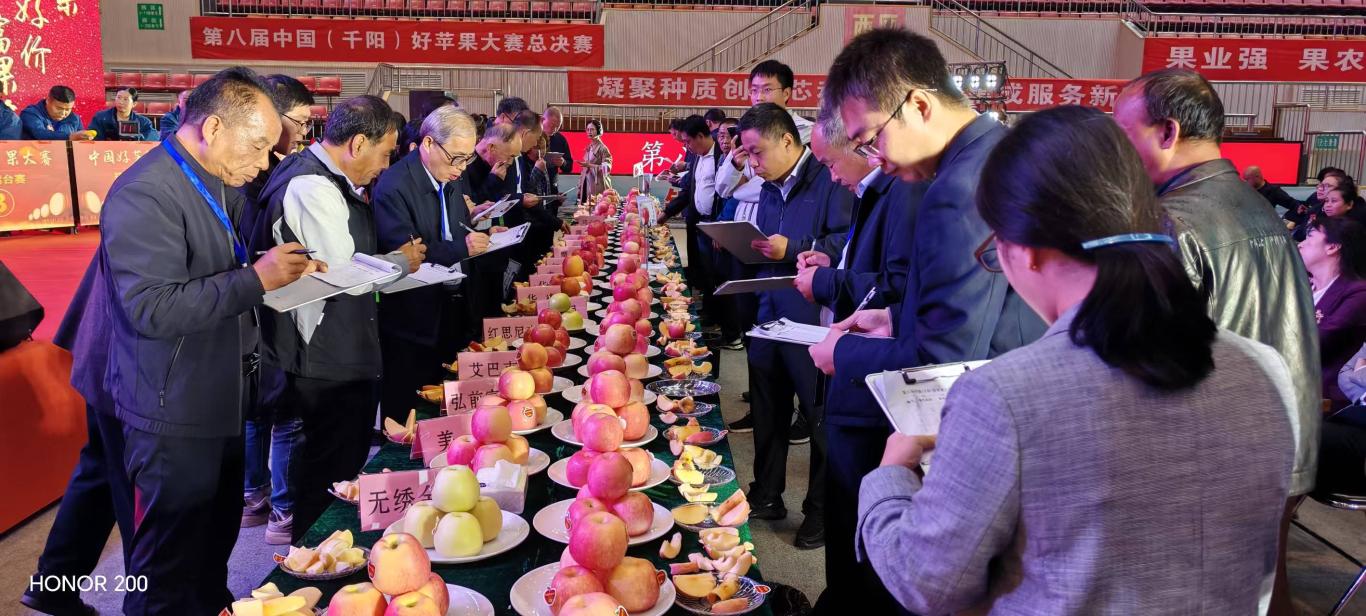中国(千阳)好苹果大赛由中国苹果工程研究中心、陕西省果业协会、中共千阳县委、千阳县人民政府等单位联合主办。赛事始终以果农为核心,以赛促标、促品、促新,进而驱动农业新质生产力转化。中国(千阳)好苹果大赛已成为果农展示成果的舞台和推动技术交流、产销对接的重要桥梁。自2017年设立以来,每年都会邀请全国果品同台竞技选出“果中精品”。大赛严格执行“农残超标一票否决制”,由河北农大苹果病虫害防控研究室进行专业检测,确保每一颗苹果安全、优质。总决赛采用“室内品质检测+现场品尝打分”双轨制,从果型、硬度、糖度到着色、口感、脆度,全方位评估苹果品质,确保评选结果科学权威。