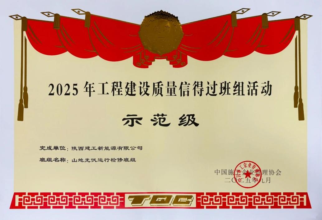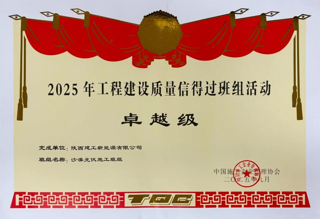 近日,中国施工企业管理协会公布了全国质量信得过班组评选结果,西安经开区企业陕西建工新能源有限公司申报的“沙漠光伏施工班组”和“山地光伏运行检修班组”两大课题,分别获评“卓越级”与“示范级”成果,成为本次竞赛中光伏领域质量管理的亮眼代表。