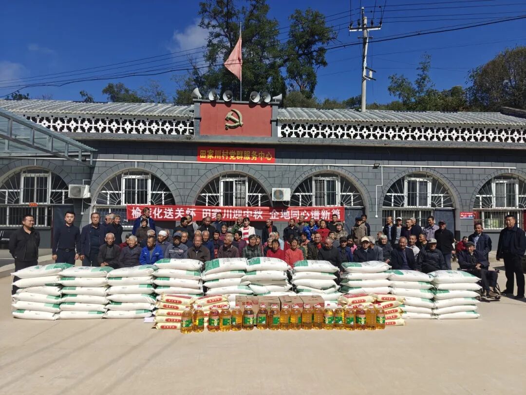 在双节来临之际,9月24日,延长石油集团榆能化公司携手贾家坪镇田家川村,以“榆能化送关怀 田家川迎双节 企地同心谱新篇” 为主题,开展了一场暖意融融的慰问活动。驻村第一书记刘鹏飞代表帮扶单位,向田家川村慈善幸福家园捐赠65袋面、20袋大米、18桶油等7200元的爱心物资。让老年人在团圆温馨的氛围中,切实感受到来自企业的祝福和社会各界的关爱。