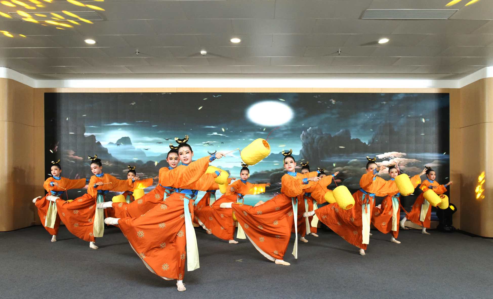 当孩子们身着素雅汉服,跳起舞蹈《家乡月》时,现场瞬间陷入静谧。伴随着轻柔的音乐,孩子们轻抬手臂、慢移脚步,将“月是故乡明”的乡愁化作了灵动的舞姿。随后,一曲《但愿人长久》将 “但愿人长久,千里共婵娟”的美好祝愿娓娓道来,生动诉说了中秋佳节“团圆”的意义。