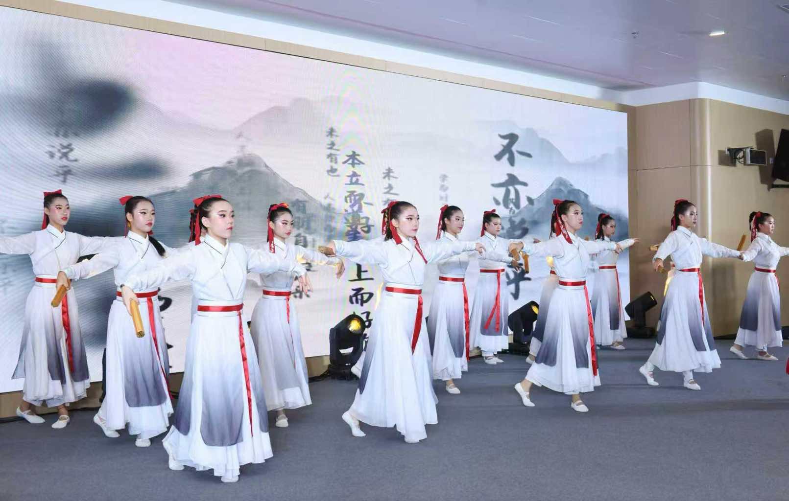 “我们寻找百家向往的乐土,我们打造盛世太平的殿堂,我们来去纵横世界的极限,我们磨砺勇敢无惧的锋芒……”国庆将至,现场的诗朗诵《何以华夏 何以中国》深情回溯文明源流,叩问民族精神根脉,激起全场爱国热情。舞蹈《遇长安书韵》中少年们手持书卷,翩翩起舞,用舞步演绎了“少年与经典的对话”,展现了新时代少年的朝气蓬勃。