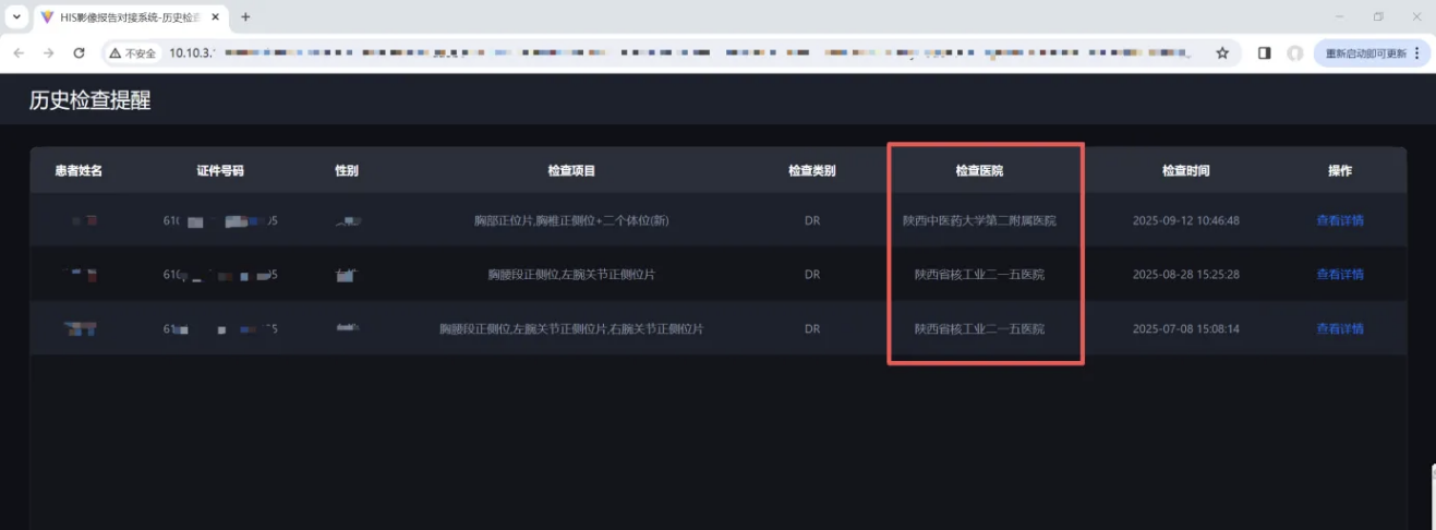 作为咸阳市第一批接入“影像云”平台的医疗机构之一,陕西中医药大学第二附属医院现已实现了市域内影像数据安全、高效存储和传输,具体功能包括:检测是否有外院报告,查看外院影像云数据,获取外院报告及影像数据。计划2025年底与陕西省“影像云”平台对接。