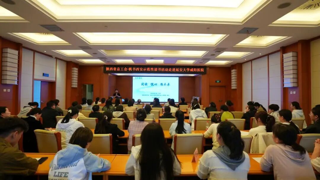 为深入贯彻落实党中央关于推动全民阅读、建设书香社会的决策部署,进一步深化职工文化建设,营造“多读书、读好书、善读书”的浓厚氛围,2025年9月25日下午,陕西省总工会联合帆书(原樊登读书)西安运营中心走进延安大学咸阳医院,以“阅读 悦心 约未来”为主题,成功举办示范性读书活动。本次活动以提升职工人文素养、激发内在动力为目标,通过专家领读、互动分享与实践引导相结合的方式,为医院70余名职工带来一场知识与心灵的双重盛宴。