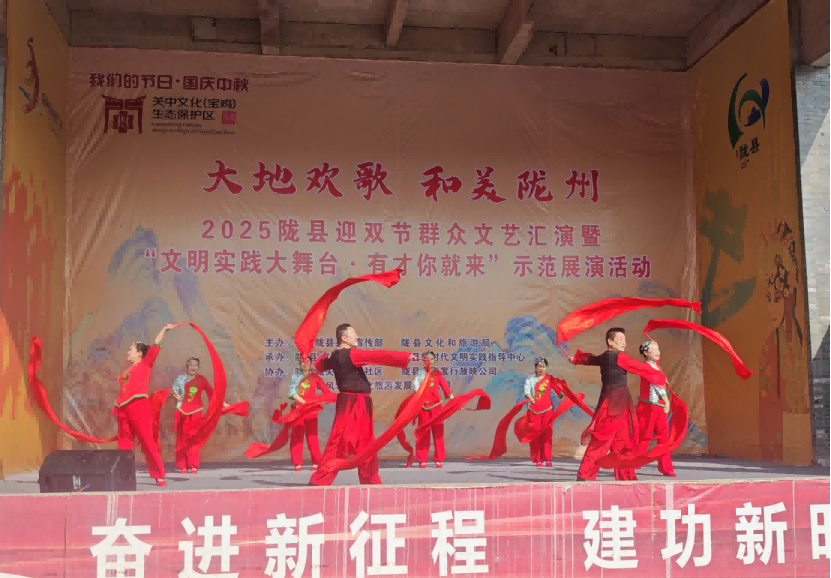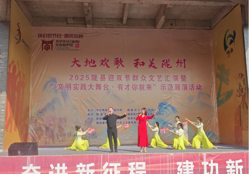 阳光讯(记者 张伟)9月29日, “大地欢歌 和美陇州”2025陇县迎双节群众文艺汇演暨“文明实践大舞台·有才你就来”集中示范活动在陇县上河郡广场精彩上演。由群众自编自演、贴近生活的15个节目轮番登场,吸引数百名群众驻足观看。