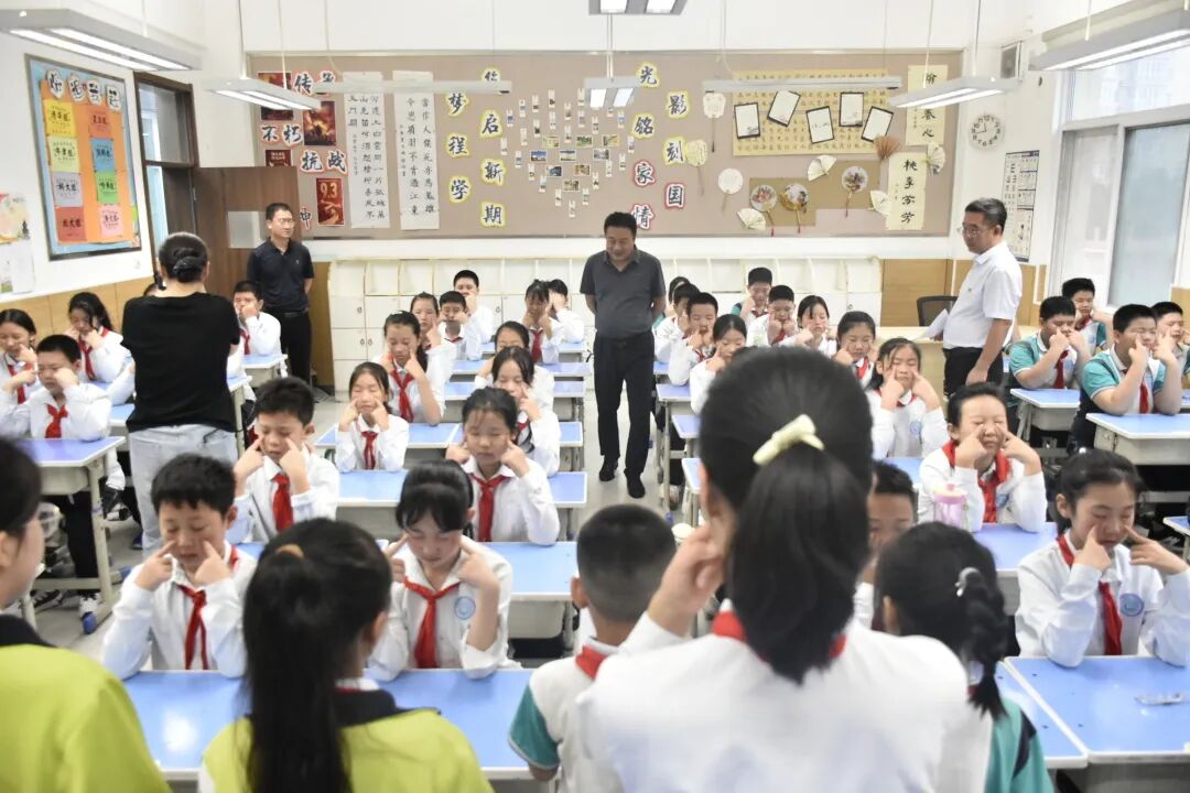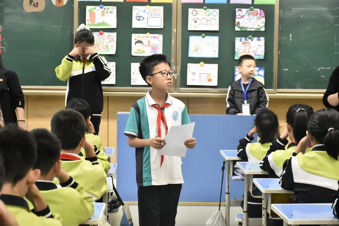 值得一提的是,张校长全程参与了本次比赛,在每个班级观摩结束后,都会走进教室,与同学们面对面交流。他语重心长地叮嘱大家:“眼睛是心灵的窗户,是我们认识世界的重要工具。大家一定要从小养成科学用眼、认真做眼保健操的好习惯,不当‘小眼镜’,用明亮的双眼看更远的未来。” 同学们认真聆听,纷纷点头表示要把爱眼护眼落实到每天的学习生活中。