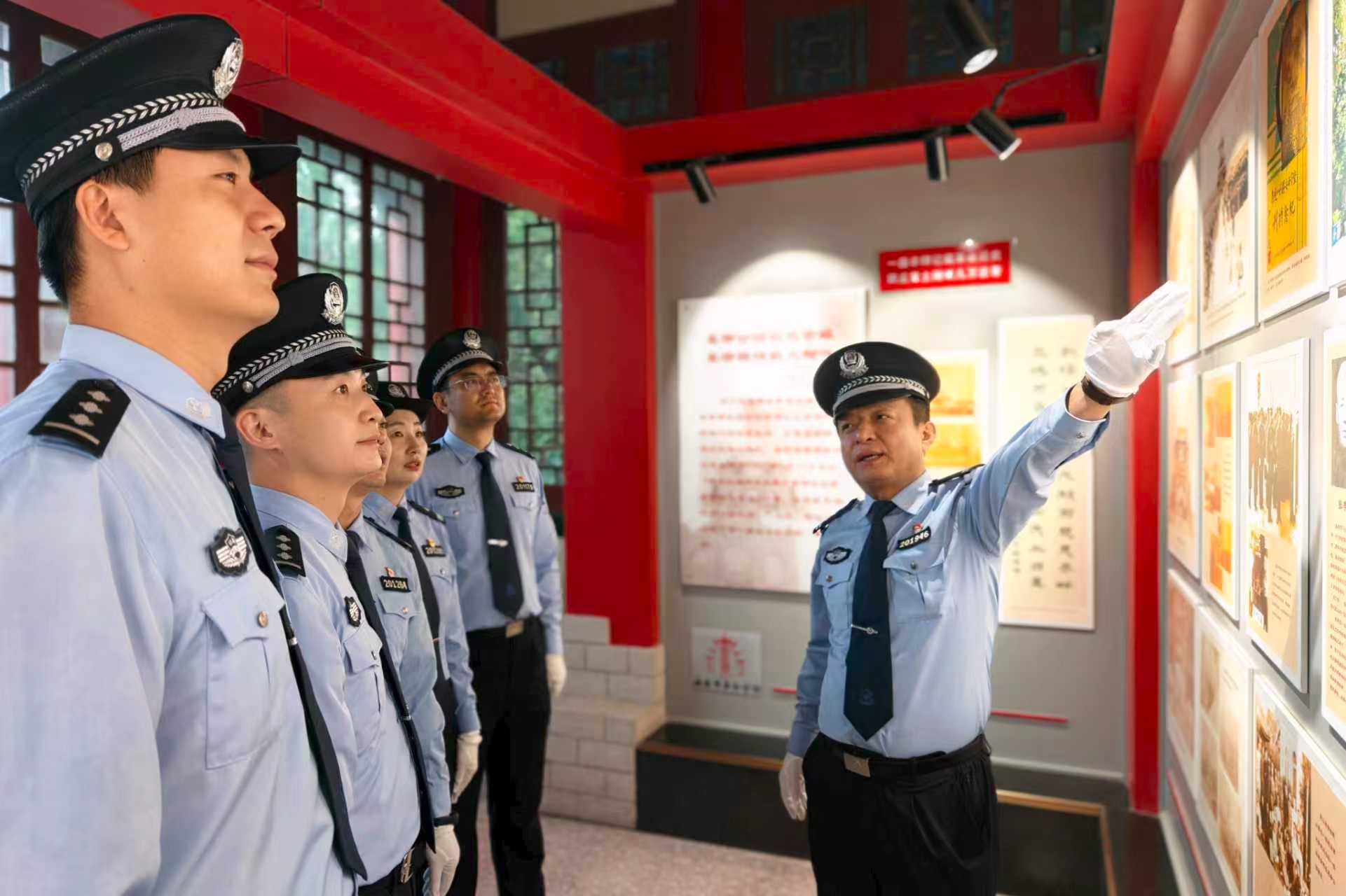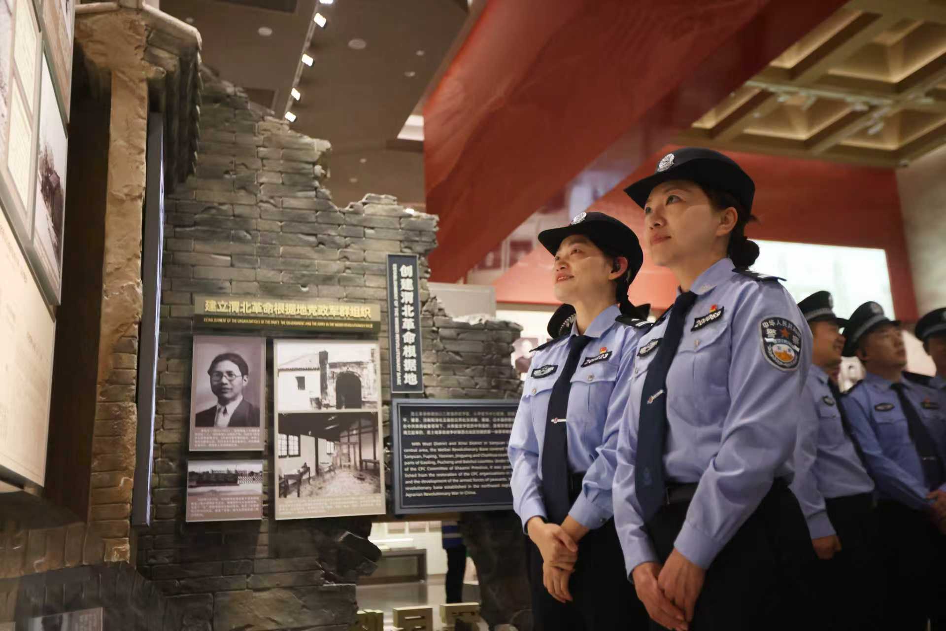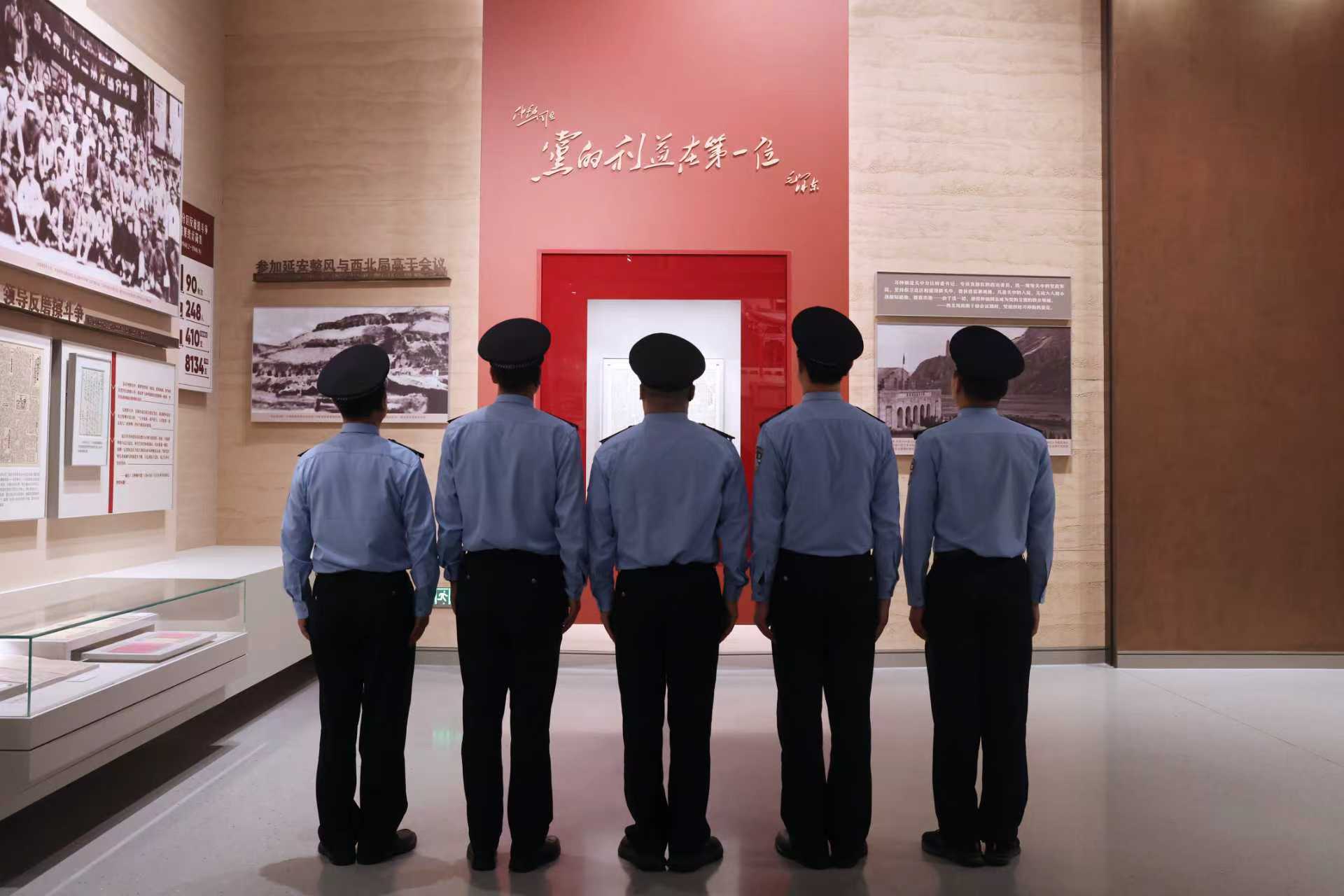 活动中,各派出所组织民警前往本地革命传统教育基地、革命纪念馆,通过瞻仰历史文物、聆听英雄事迹、重温入党誓词等环节,沉浸式感悟革命先辈为国家独立、人民幸福挺身而出的崇高精神。在关中革命纪念馆内,公安处干部民警们驻足于一幅幅珍贵的历史照片、一件件承载记忆的实物展品前,认真聆听讲解员讲述革命时期的峥嵘岁月,深刻体会英烈们舍生取义、无私奉献的家国情怀,现场庄重肃穆的氛围让每一位民警都接受了一次深刻的思想洗礼和精神淬炼。
