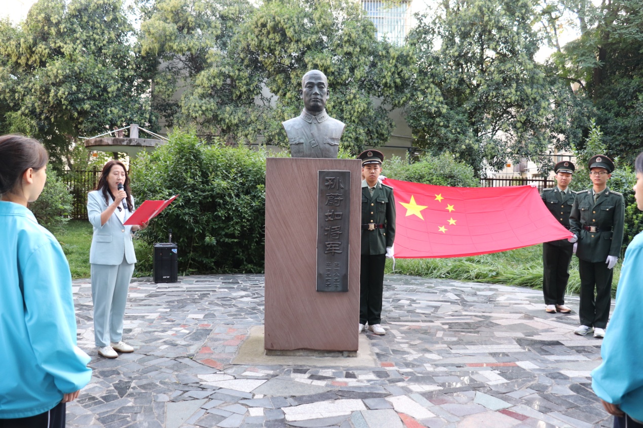 在主持人赵洁老师的主持下,活动有序进行。全体师生向孙蔚如将军及所有革命烈士默哀一分钟,现场寂静无声,唯有秋风轻拂,传递着后辈对先烈的无限追思与崇高敬意。