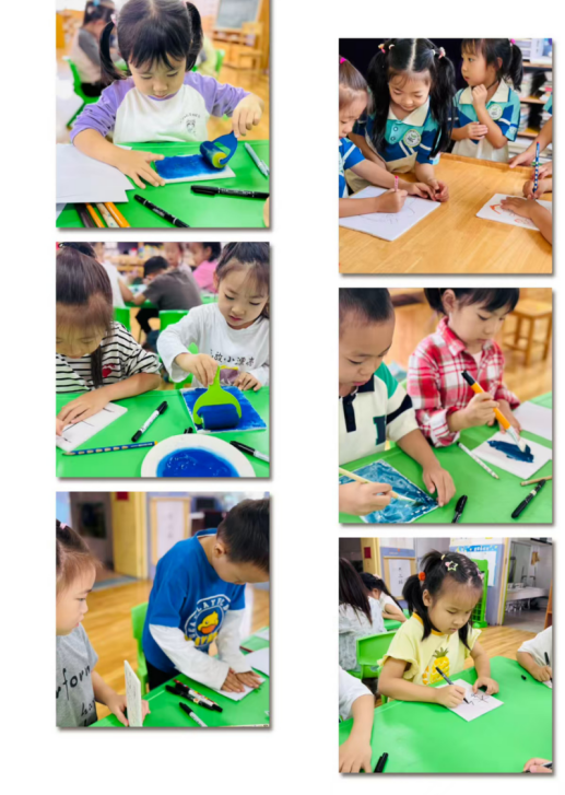 当稚嫩的小手遇上缤纷的彩纸,一场关于祖国山河的艺术创作就此展开。在中一班,“撕贴画——祖国山河美”活动正热火朝天地进行着。一片片绿色的纸张,被撕贴成连绵起伏的青山,而最亮眼的,是被他们精心粘贴的五星红旗,孩子们通过撕、贴、拼这些充满趣味的动作,将自己对祖国的认知与热爱具象化。