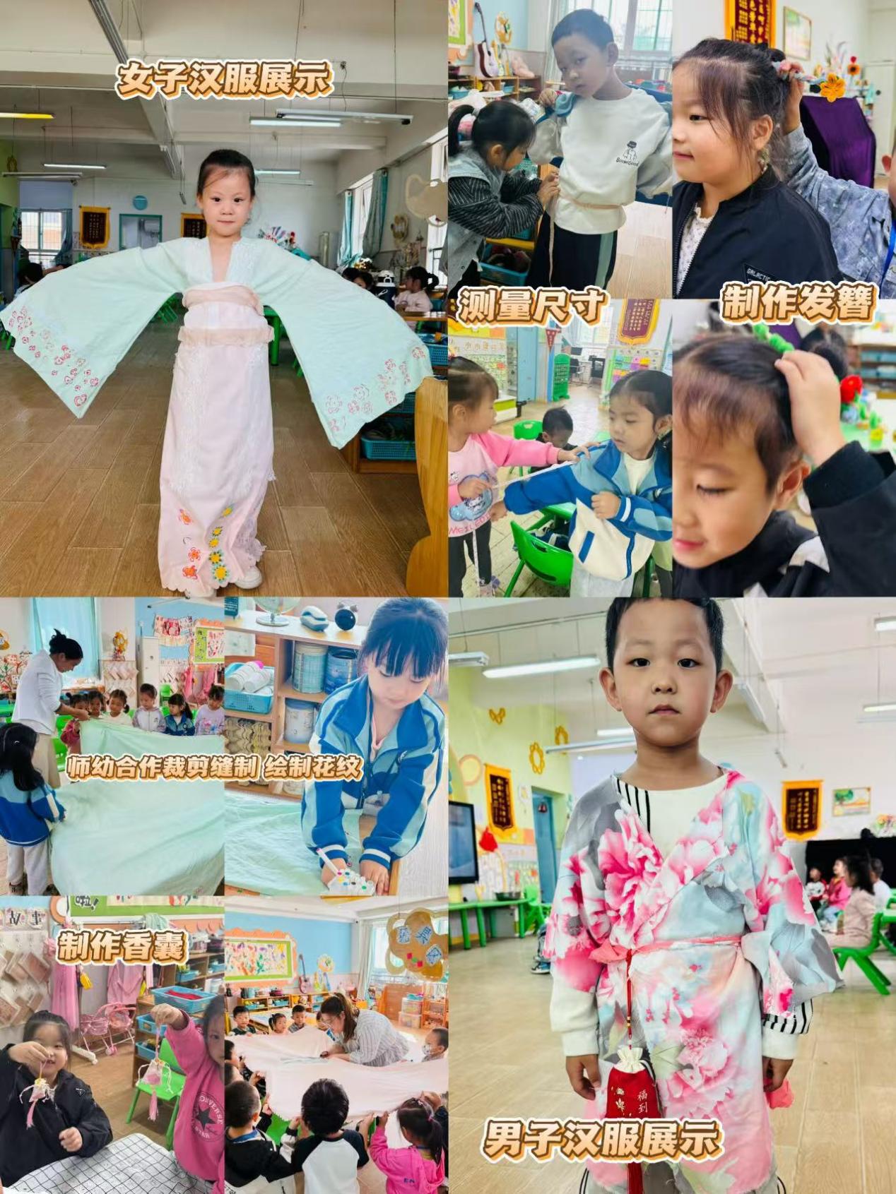 宽袍大袖,尽显风流;交领右衽,承续千年。大三班的孩子们,则开启了一场穿越时空的美丽之旅——亲手制作汉服。在老师的讲解下,他们了解了“华夏”二字的含义与汉服所承载的深厚文化底蕴。衣袂飘飘间穿越古今。