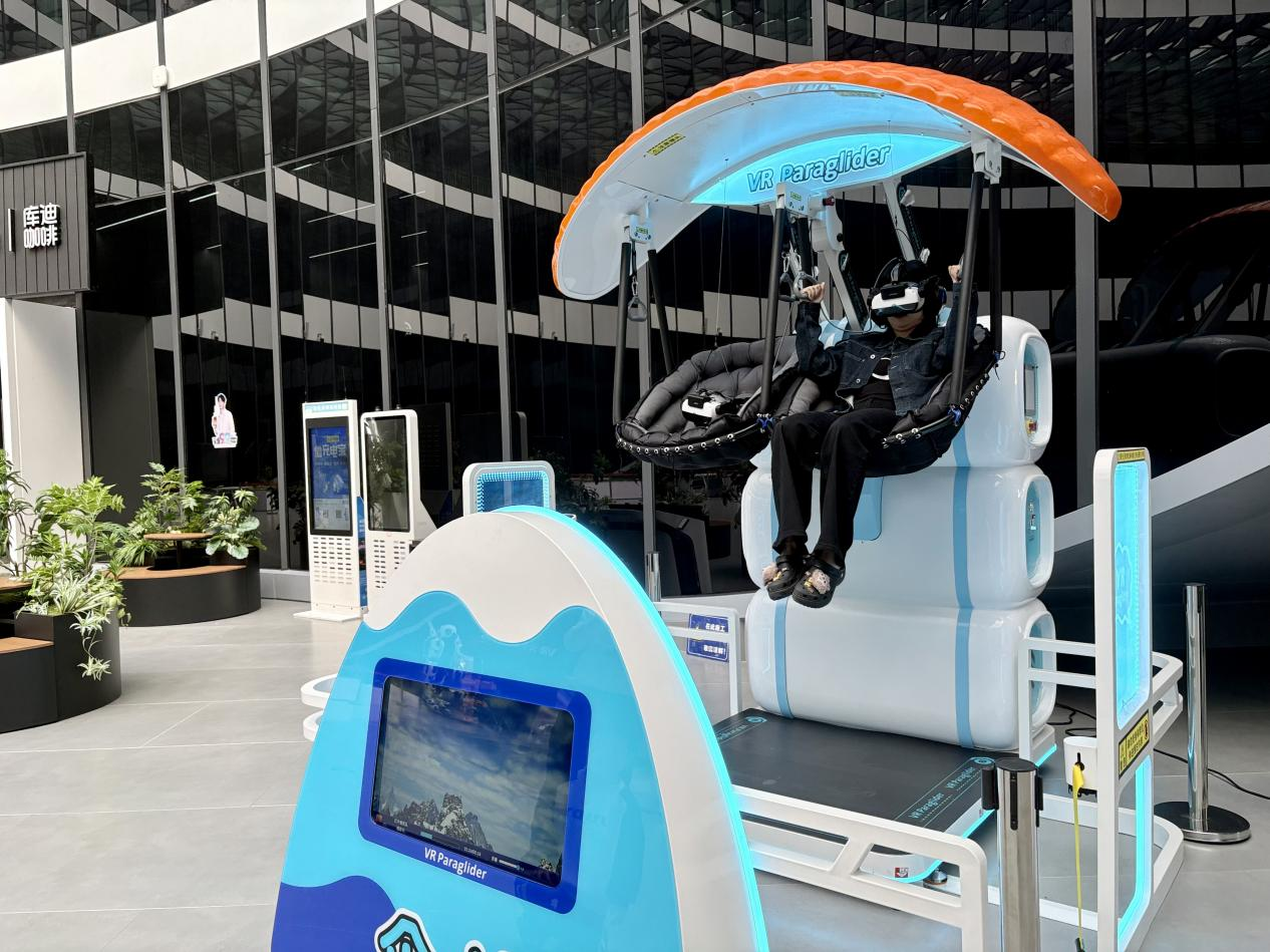 走进咸阳高新区AI创新港,中空水幕瀑布就像“时空隧道”,瞬间把人拉进未来场景。飞跃大秦、7D悬空飞行、VR大空间、MR卡丁车、VR跳伞、AR恐龙大冒险、机甲旋风7大畅玩项目,每个都藏着惊喜:MR卡丁车项目中,戴上设备就能立马“穿越”到怪兽战场,转动方向盘躲避突袭的同时,射击积分还会不断上涨,父母玩得比孩子更投入;VR跳伞体验里,从万米高空跃下的瞬间,风声会在耳边呼啸,滑雪场全景清晰可见,逼真的失重感常常让人不自觉攥紧扶手;《飞跃大秦》和7D悬空飞行项目推出了全新剧情,270度环幕中战车碾过古道的画面极具冲击力,座椅俯冲时的风扑面而来,震撼程度比电影还要强10倍;全息投影区更是有趣,挥手就能掀起漫天枫叶,转身又能与海星在深海互动。