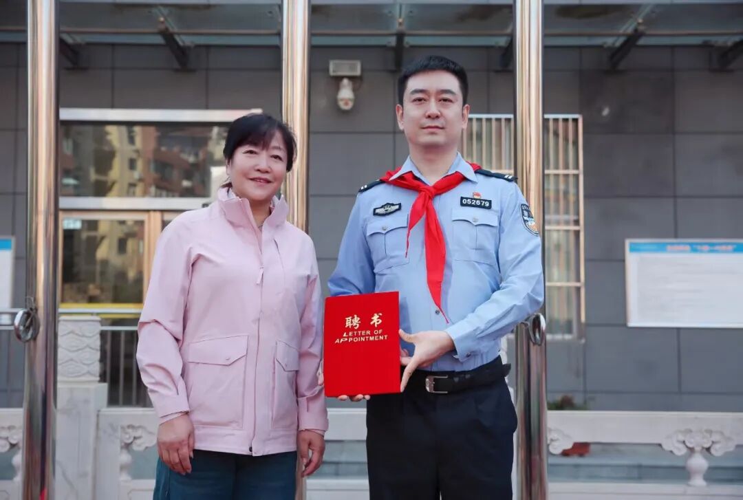 史惠校长为西安市公安局高新分局白沙路派出所王宇栋副所长颁发法治副校长聘书。王副所长的专业力量将助力该校法治教育升级,与学校携手守护师生安全。