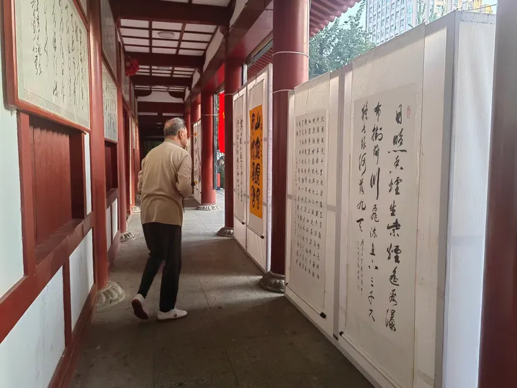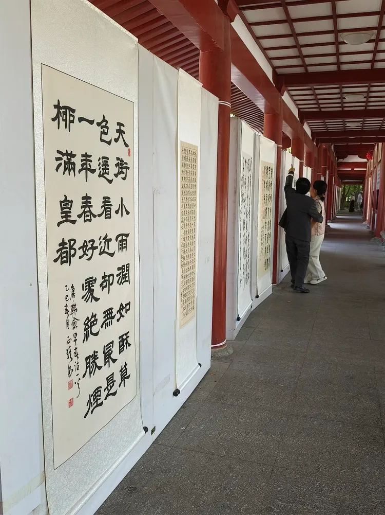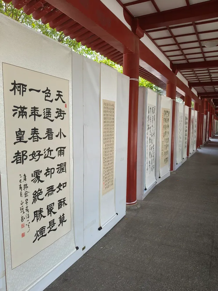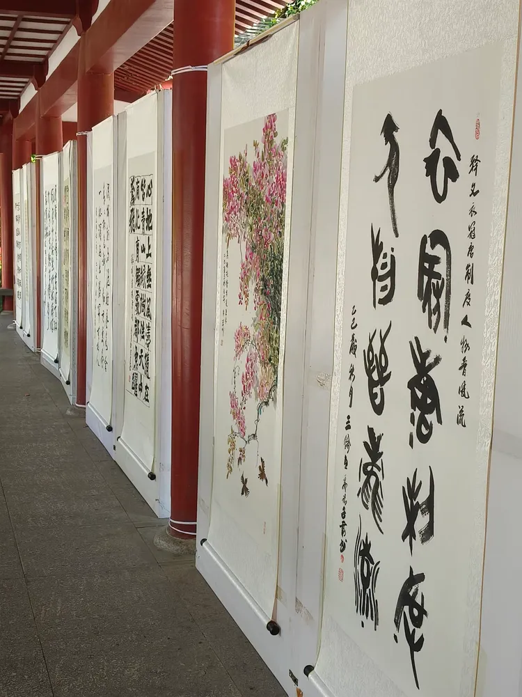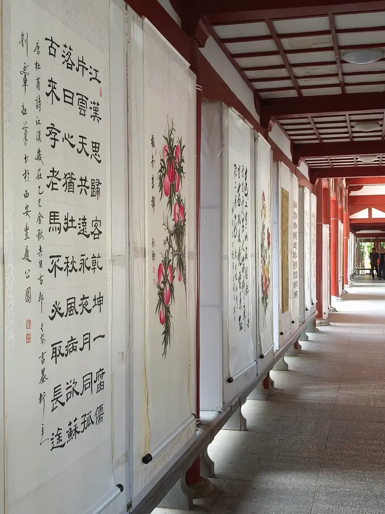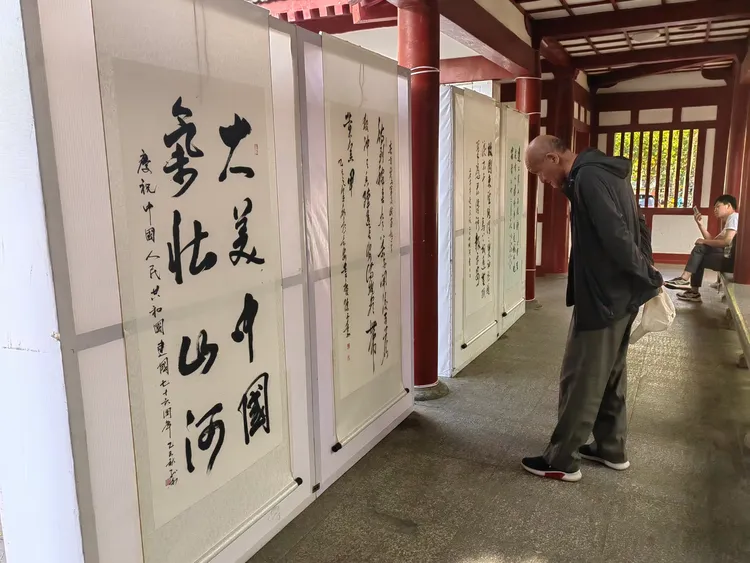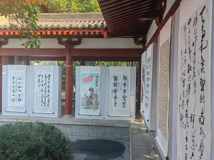 阳光讯(记者 韩文韬 实习记者 王义卓)陕西省新闻书画家协会联合西安市丰庆公园管护中心,共同在丰庆苑仿唐长廊里举办的“问道唐诗,墨韵长安”庆祝新中国成立76周年书画展,于9月29日正式开幕!共展出的158幅作品中,其中西安军旅书画家文化交流委员会,孙利、李林、李志锋、仇宪文、朱嵩瀛、洪永庆、张建明、岳林海、高春毅、王相魁、杨拴稳、申锐丽、寇鸿昌、吴明重、李绍忠、黎文科等16位军旅书画家作品入选并参展。充分体现了军旅书画家们的一片爱国情怀与传承中华民族优秀传统文化的创作积极性,同时为2025年国庆节献上了军旅书画家们的一份文化厚礼。