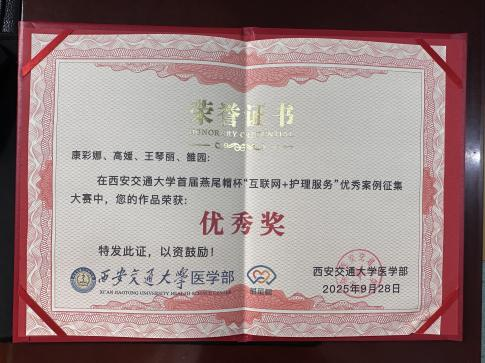 阳光讯(记者 郑亚雷)9月28日,西安交通大学医学部首届“燕尾帽杯——互联网+护理服务”优秀案例征集大赛圆满落幕。通用技术环球医疗西电集团医院护理团队凭借在“互联网+护理服务”领域的创新实践,从众多参赛队伍中脱颖而出,成功斩获1项二等奖、2项优秀奖。
