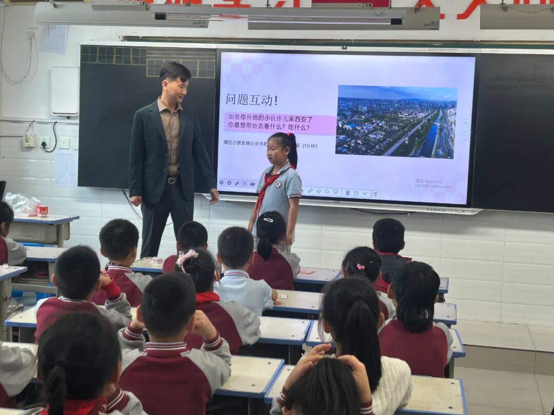 二年级一班家长为学生带来了一堂“小小旅行家——探索古都西安”为主题的解说课。家长化身“古都向导”走进课堂,从古迹、美食、文化几个方面,沉浸式解锁西安魅力,让历史文化知识在趣味体验中变得鲜活可感。