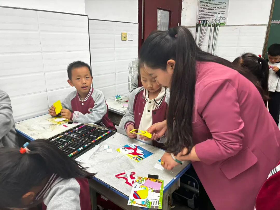 二年级四班家长为学生带来一堂“不一样的绘画”课。这堂绘画课超特别!剪纸灵动造型作底,再以彩笔添绘色彩与细节,剪纸的立体触感碰撞彩笔的鲜活晕染,让笔下画面既有创意又有层次。