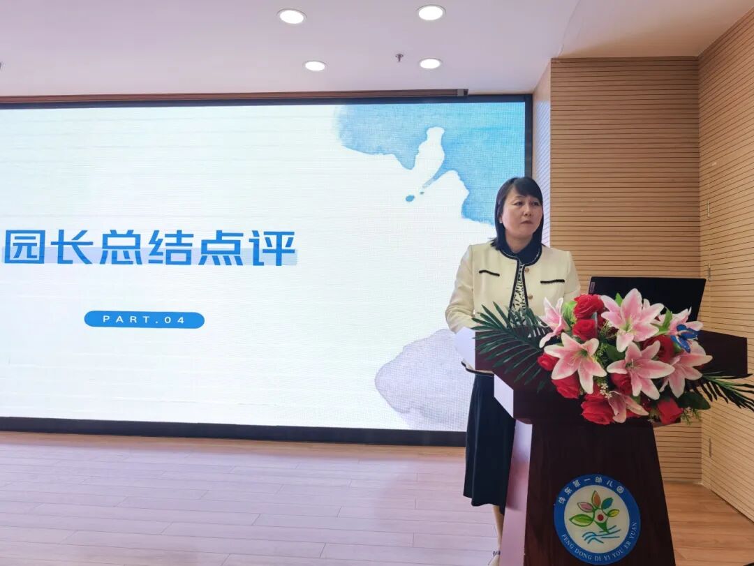 开题会接近尾声,段园长上台作总结讲话。她先是对本次开题会的圆满召开表示祝贺,对各课题组的精心准备给予肯定。随后,她对全体教师提出期望:“希望各课题组以此次开题为起点,把研究做细、做实——既要扎根班级实践,又要及时反思调整;更希望全体教师以课题研究为契机,养成‘观察-思考-研究’的习惯,让教研真正服务于幼儿成长、助力教师发展。”