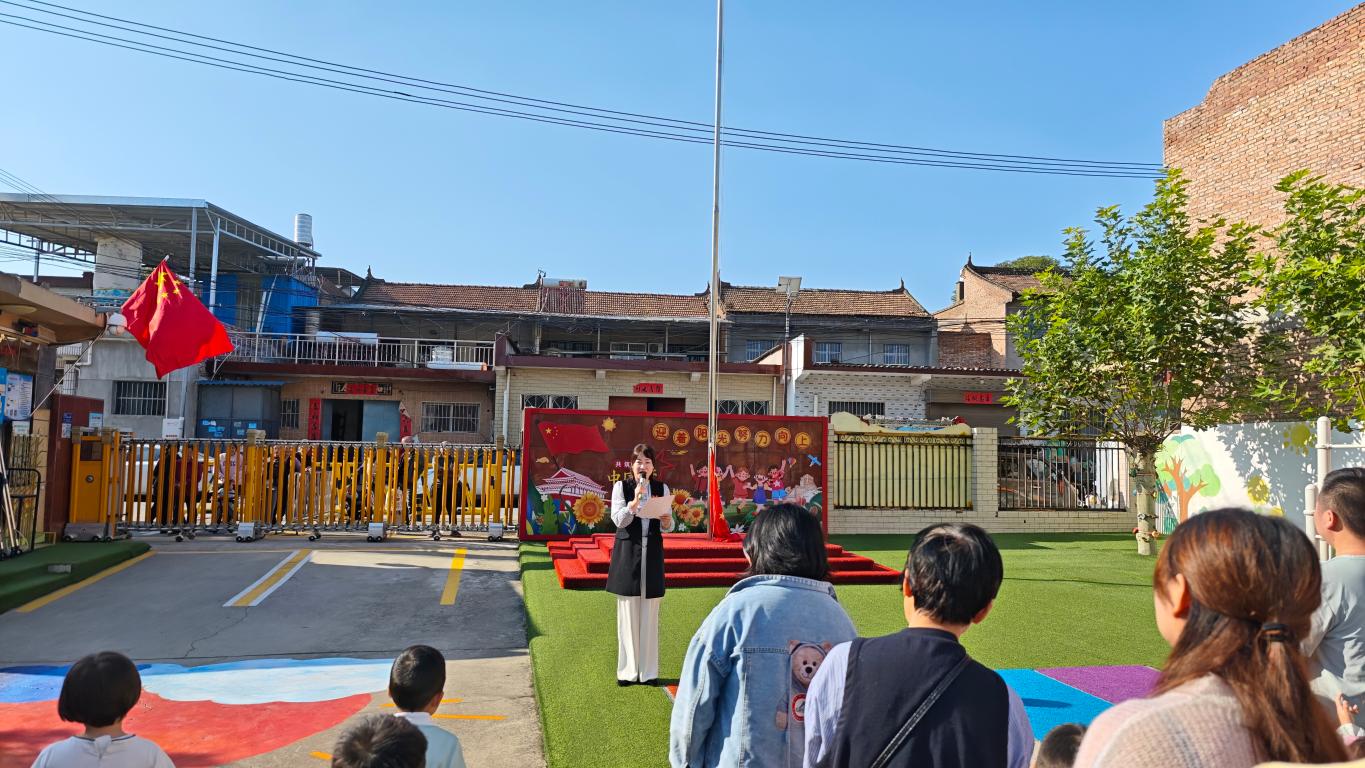 庄严的升国旗仪式是活动的重要环节。伴随着雄壮的国歌,五星红旗冉冉升起,全体师幼及家长行注目礼。灞桥中心校副校长刘媛发表了热情洋溢的致辞,向大家送上了节日的祝福与殷切的期望。紧接着,中一班的小朋友和家长代表分别进行了国旗下讲话,用稚嫩的童声和真挚的情感表达了对祖国的热爱,让爱国的种子在每个人心中扎根。