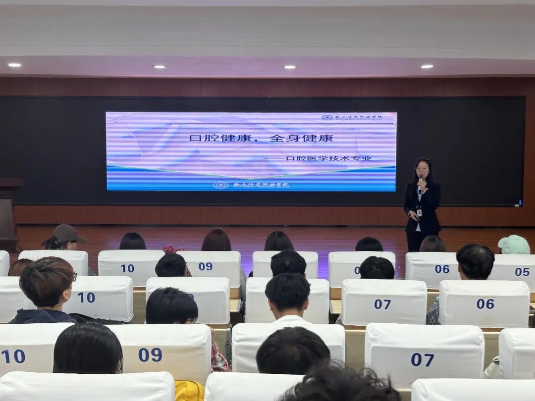 口腔医学技术专业由专业带头人薛莹主任为学生宣讲。她以专业视角为切入点,围绕专业核心内涵、多元工作岗位、广阔就业方向及系统化课程体系等内容,展开了一场兼具深度与实用性的分享。宣讲内容紧密贴合行业实际与新生需求,既清晰解读了专业的学科定位,又生动勾勒出未来职业发展蓝图,不仅帮助同学们快速搭建起对所学专业的认知框架,更引导大家以更长远的视角规划大学学习生活,为即将开启的专业探索之旅注入了信心与方向。
